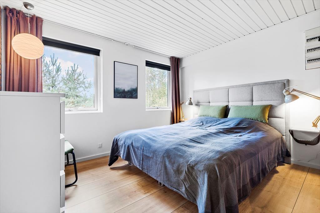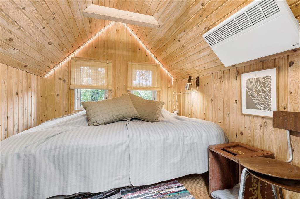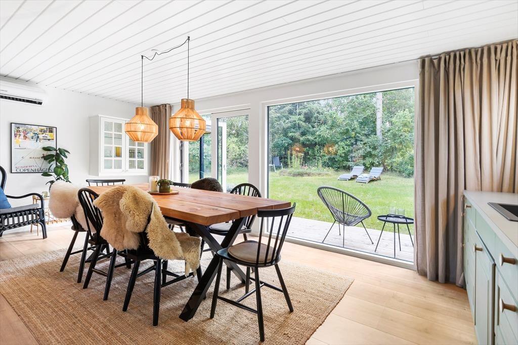 Her er der virkelig gjort noget ud af indretningen med rolige farver, stemningsfuld belysning og en stil, der straks får dig til at føle dig hjemme. Fra stuen har du et smukt kig til naturen udenfor, mens du hygger dig med et spil kort, deler gode historier eller nyder et lækkert måltid ved det store, hjemmelavede plankebord. Det grønne, stilfulde køkken gør det til en fornøjelse at lave feriemad, og i den bløde sofa foran pejsen kan du nyde en stille stund med en god bog. Huset rummer tre dejlige soveværelser med dobbeltsenge samt et hyggeligt anneks – perfekt til gæster eller teenagere, der vil have lidt privatliv. Badeværelset er rummeligt med stor bruseniche, og der er praktisk bryggers med vaskemaskine og tørretumbler. Brænde til pejsen er naturligvis gratis.