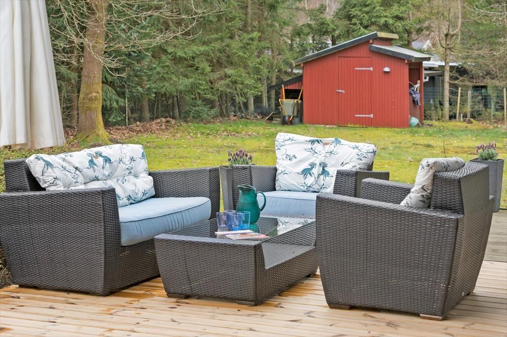 Huset har en stor dejlig lukket grund med god plads til de små- og også til de store børn. På terrassen kan du læse en bog, se efter børnene og nyde den ro, som området byder på. Den findes ikke mange andre steder. Har du hunden med er den også velkommen og kan løbe frit rundt på grunden.