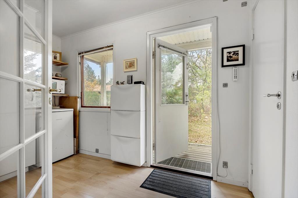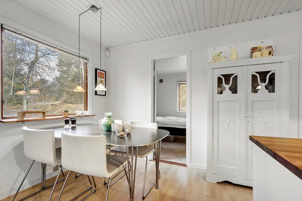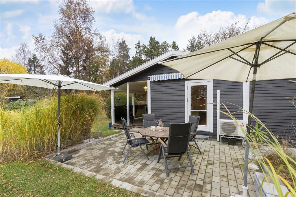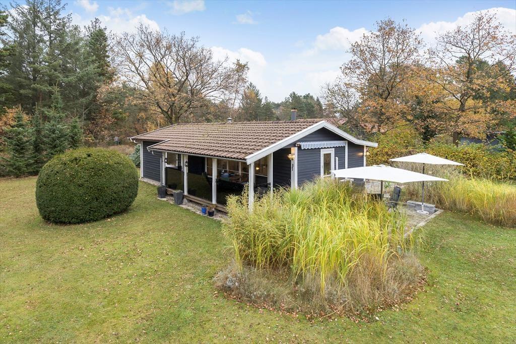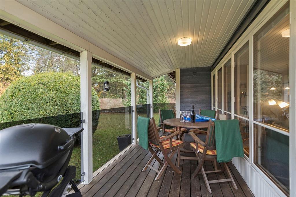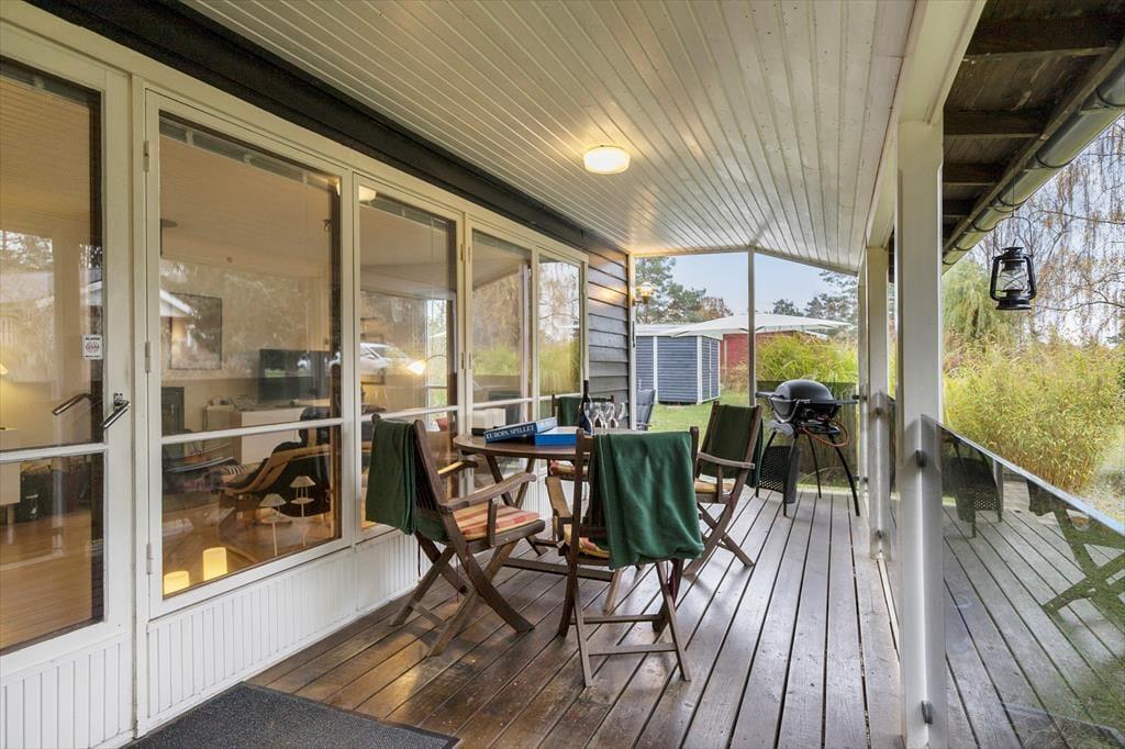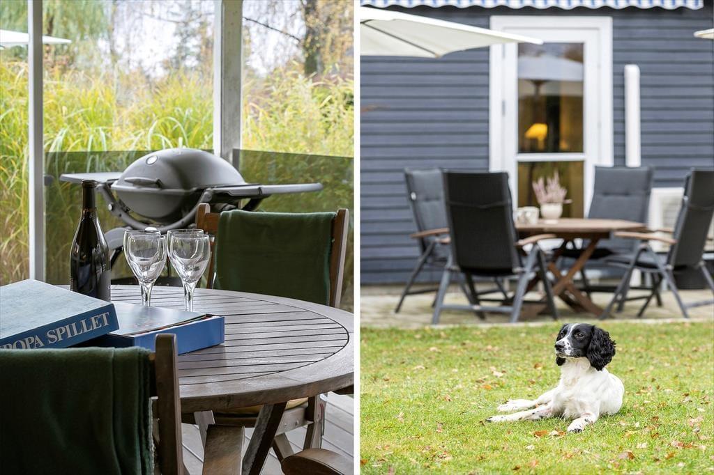 Livet leves også skønt udenfor, hvor haven byder på rig mulighed for at nyde solen, slappe af og tage måltiderne under åben himmel. Om I slår jer ned i en liggestol med en bog eller kaster jer ud i boldspil på græsset, så er her masser af plads til leg og hyggelige stunder. Om aftenen kan I tænde op i grillen og lade jer forkæle af sommerens duftende måltider under skumringen. Her kan I trække jer helt tilbage og bare nyde stilheden og fuglesangen på svalegangen langs den ene side af huset, som er overdækket.