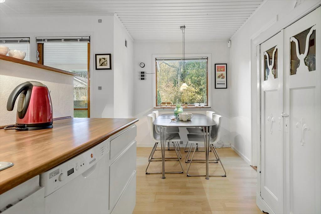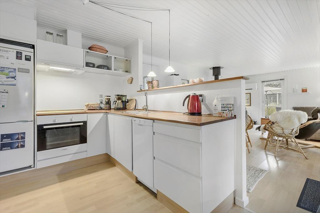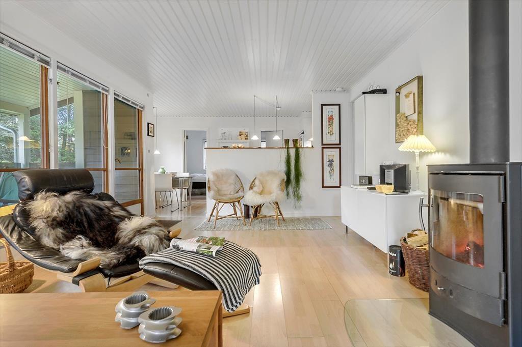 Når du træder ind i dette dejlige feriehus på Skovduevej, bliver du straks mødt af en hyggelig atmosfære og lyse rum, der inviterer til afslapning og fælles oplevelser. Stuen er perfekt til hyggelige aftener med hele familien, hvor I kan nyde ildens knitren fra brændeovnen og måske lade jer opsluge af en god film. Det åbne køkken gør det nemt at samles om madlavningen, og huset rummer alt, hvad I har brug for til en afslappende ferie. Her er både komfort og god plads – alt er klar til jeres ferieeventyr.