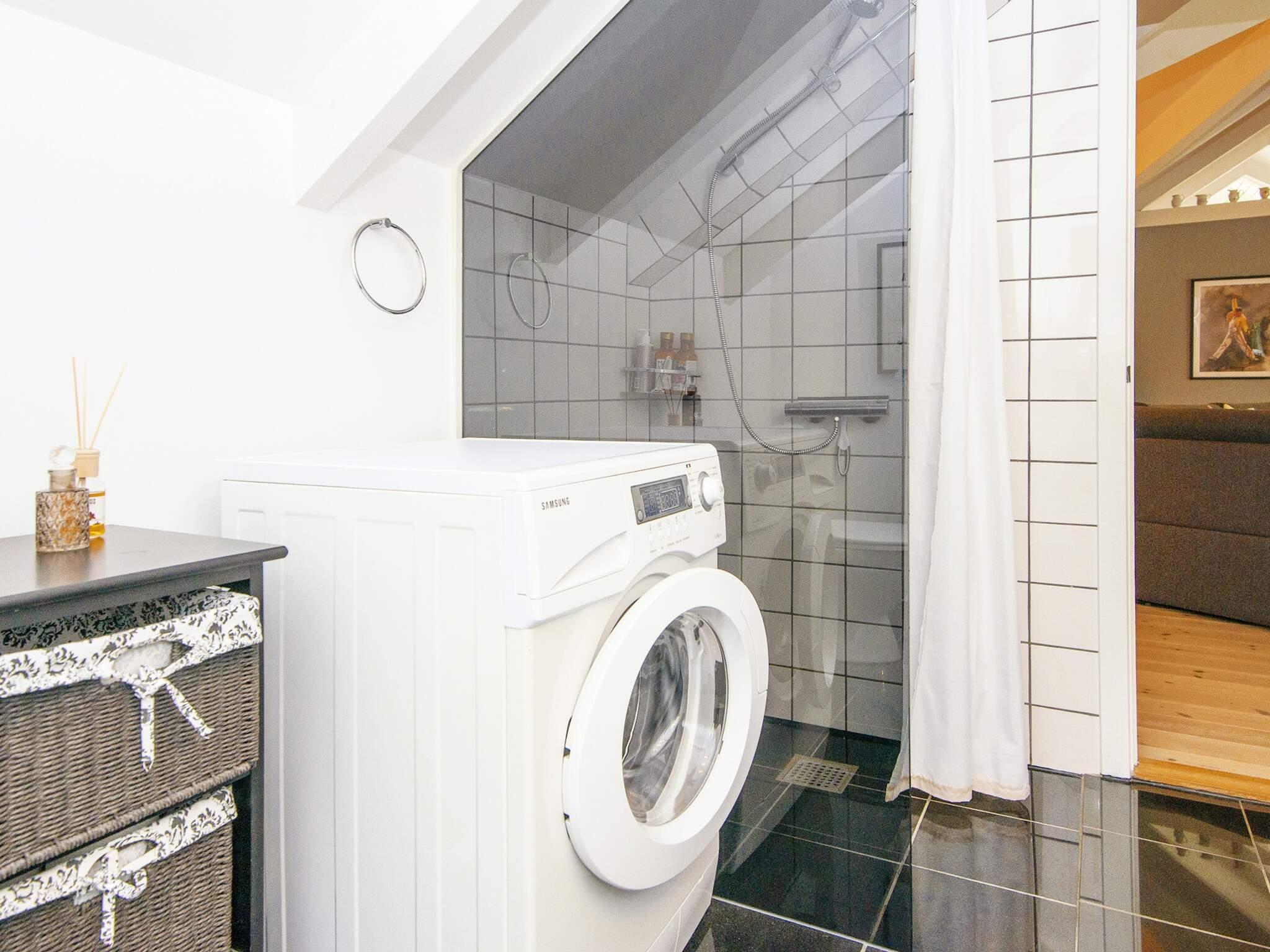 Bad/wc: Vaskemaskine, wc, håndvask, bruser