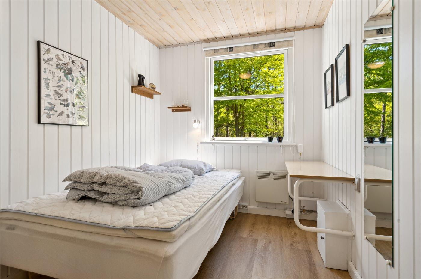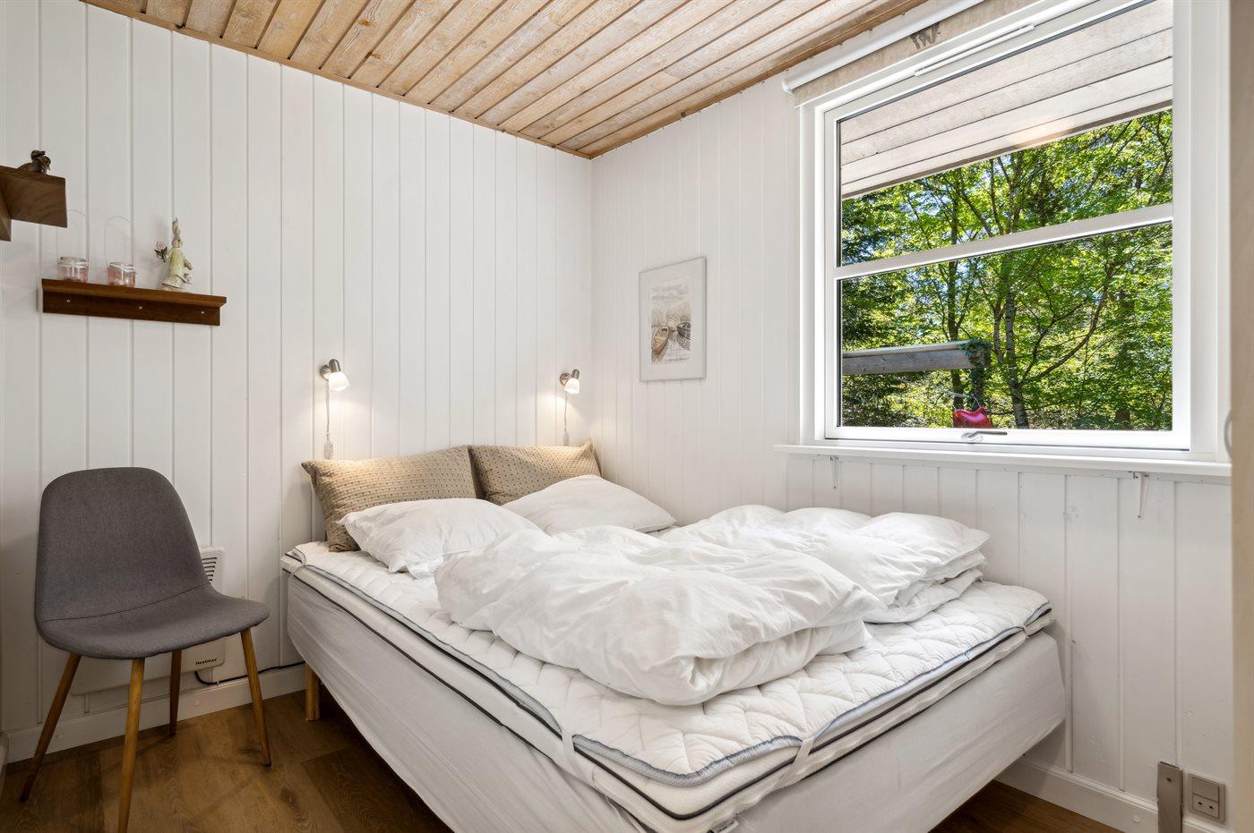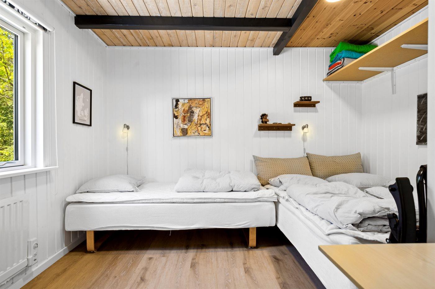 Der er i alt 3 soveværelser. Sovepladserne fordeler sig på: 4 sovepladser i dobbeltsenge. 2 sovepladser i enkeltsenge. Derudover er der 1 stk. barneseng.