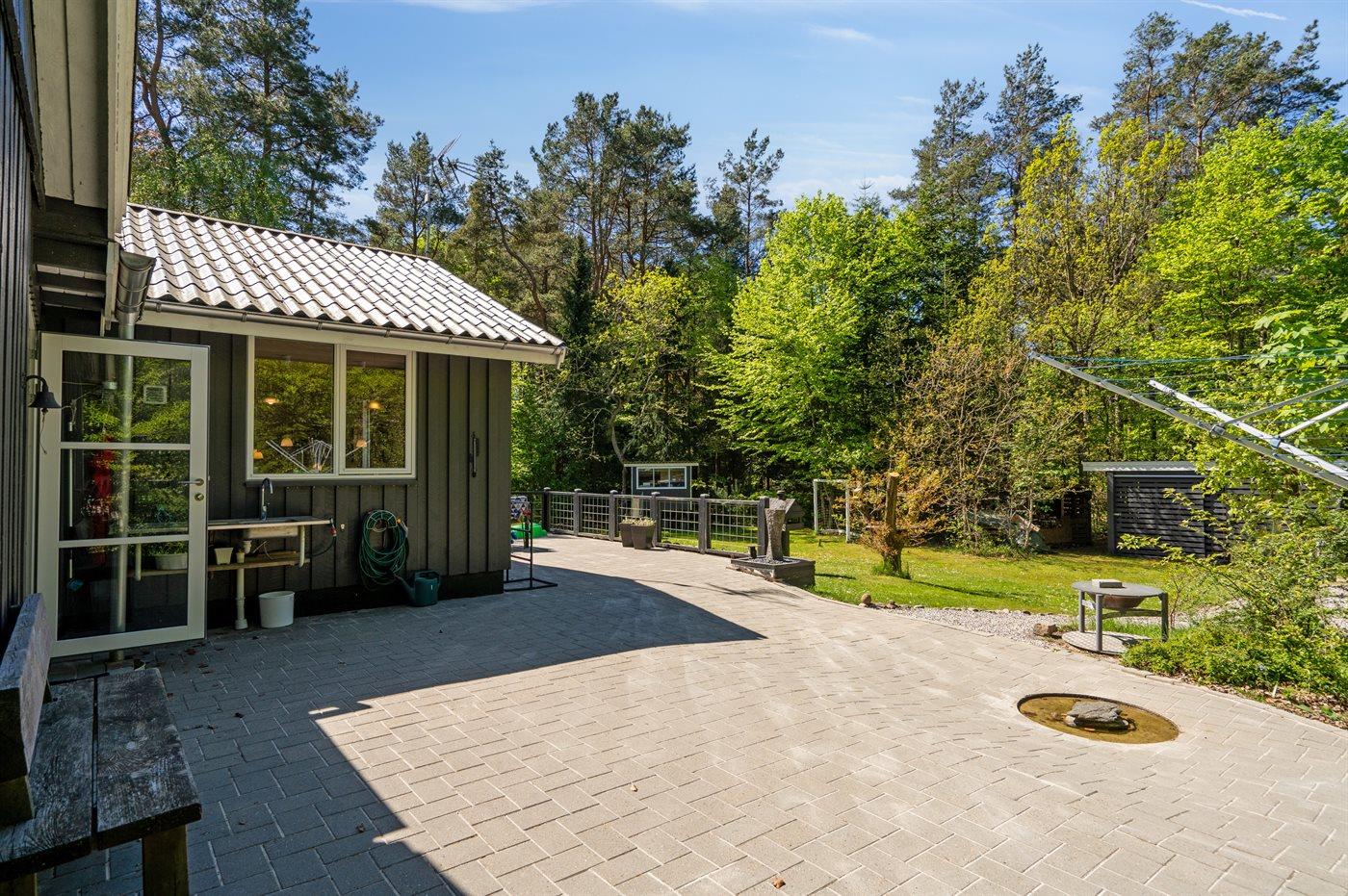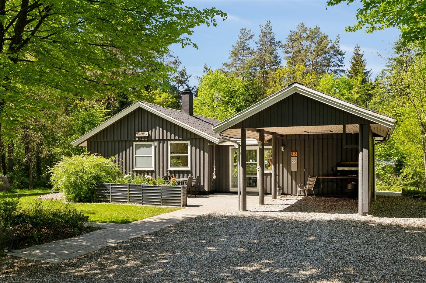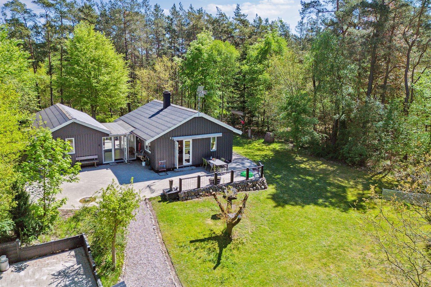 Hyggeligt og moderniseret sommerhus i naturskønt område nær Ebeltoft med store terrasser og udendørs aktiviteter.