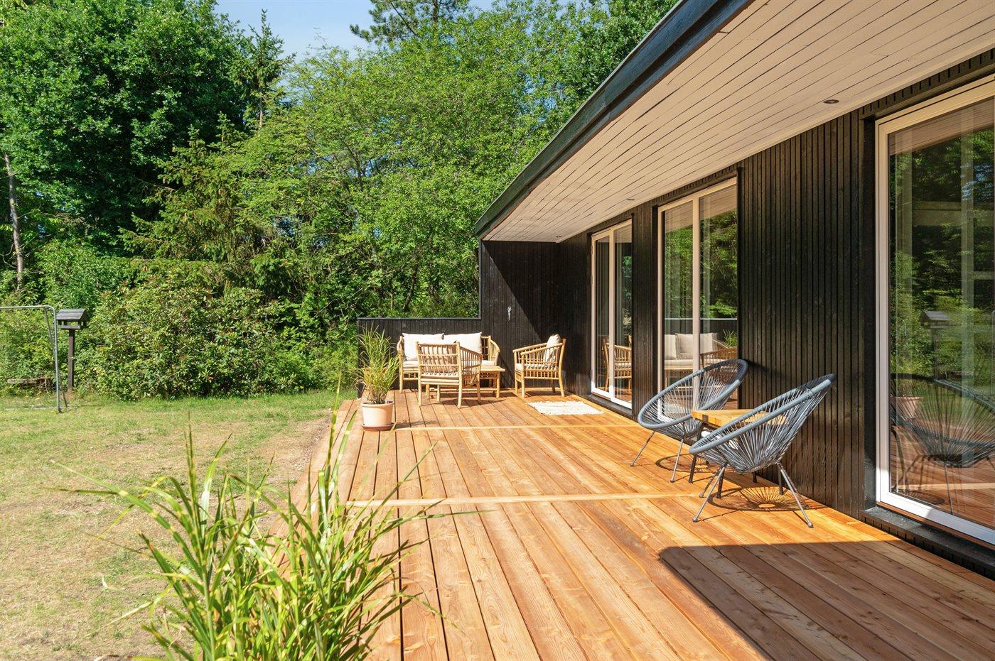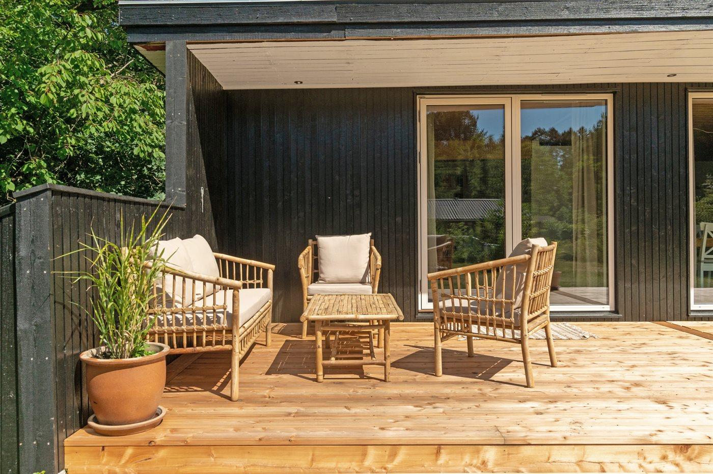 Til huset hører et dejligt og til dels overdækket terrasseareal, hvor man kan tilbringe mange timer i det fri.