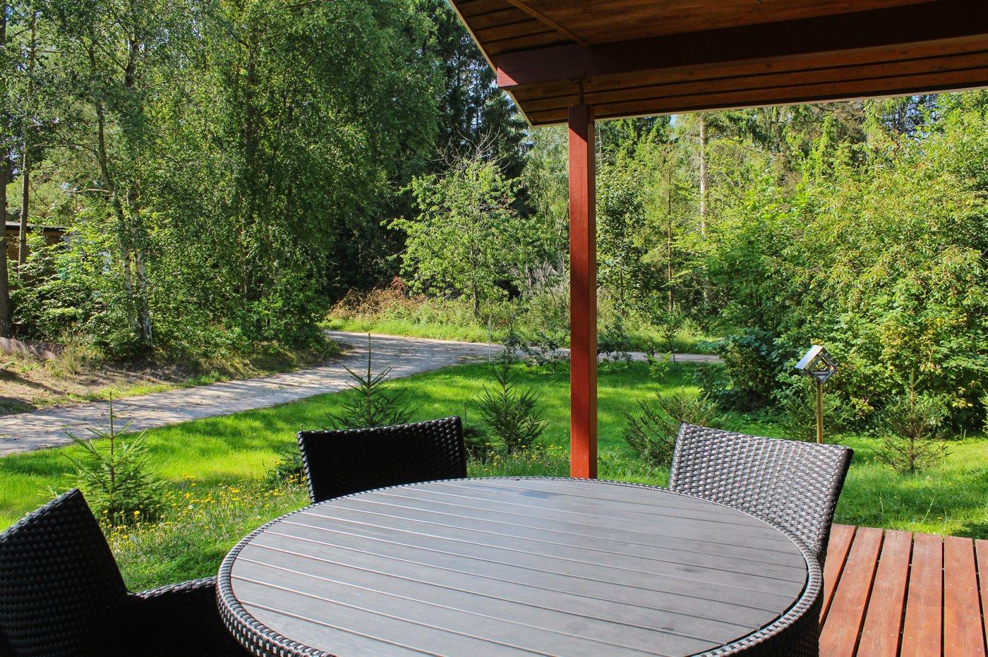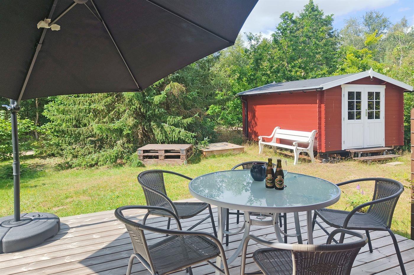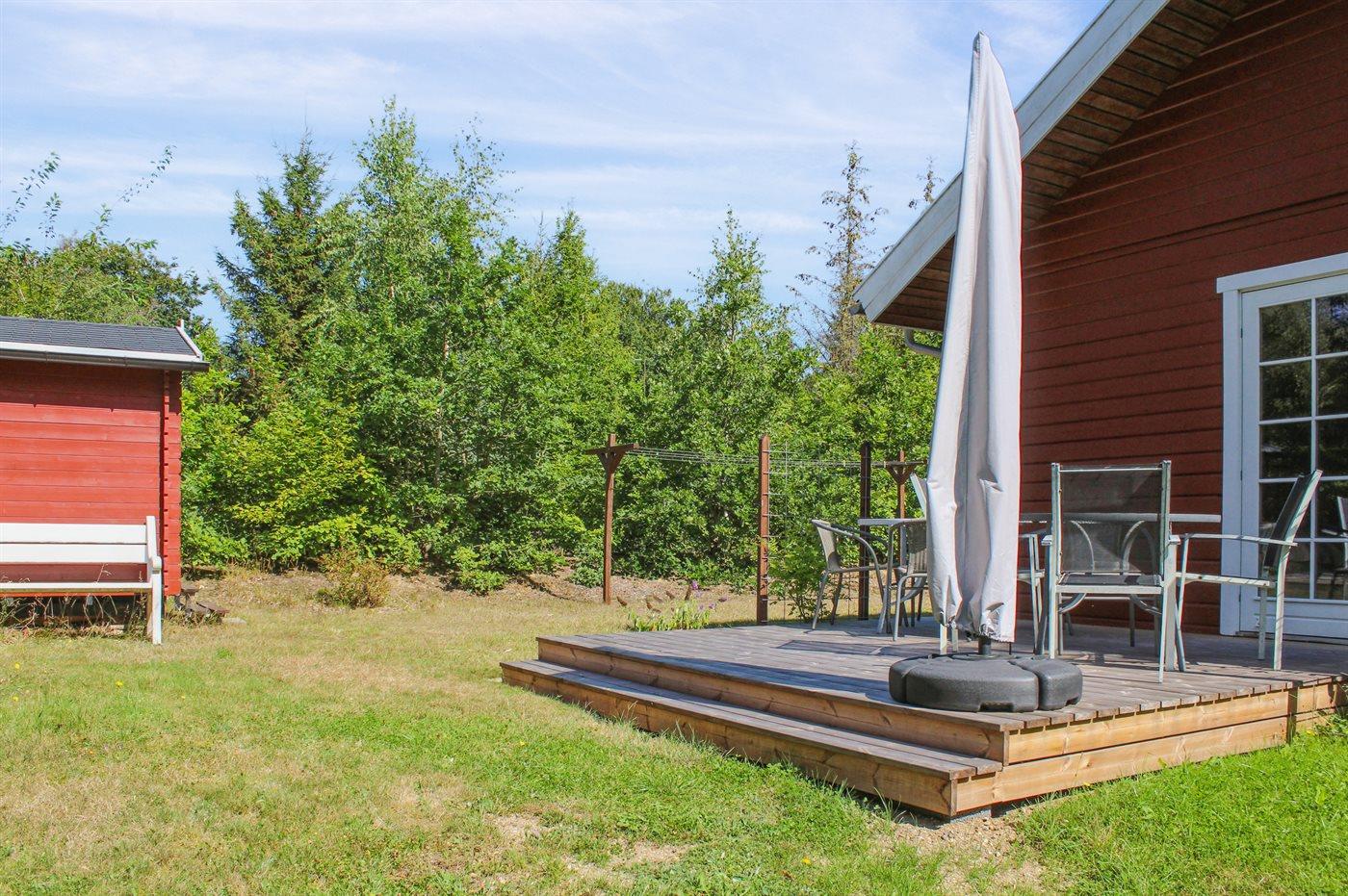 Ferieboligen er beliggende på en 1246 m² stor naturgrund. Der er 8000 m til havet. Nærmeste forretning er beliggende i en afstand af 4000 m. Til ferieboligen hører åbent terrasseareal. Desuden er der overdækket terrasse. Der er redskabsrum. Gynge. Sandkasse. Bålsted. Grill til rådighed. Parkering ved ferieboligen.