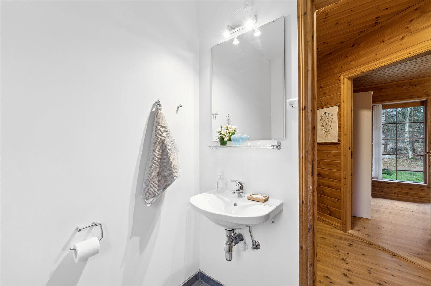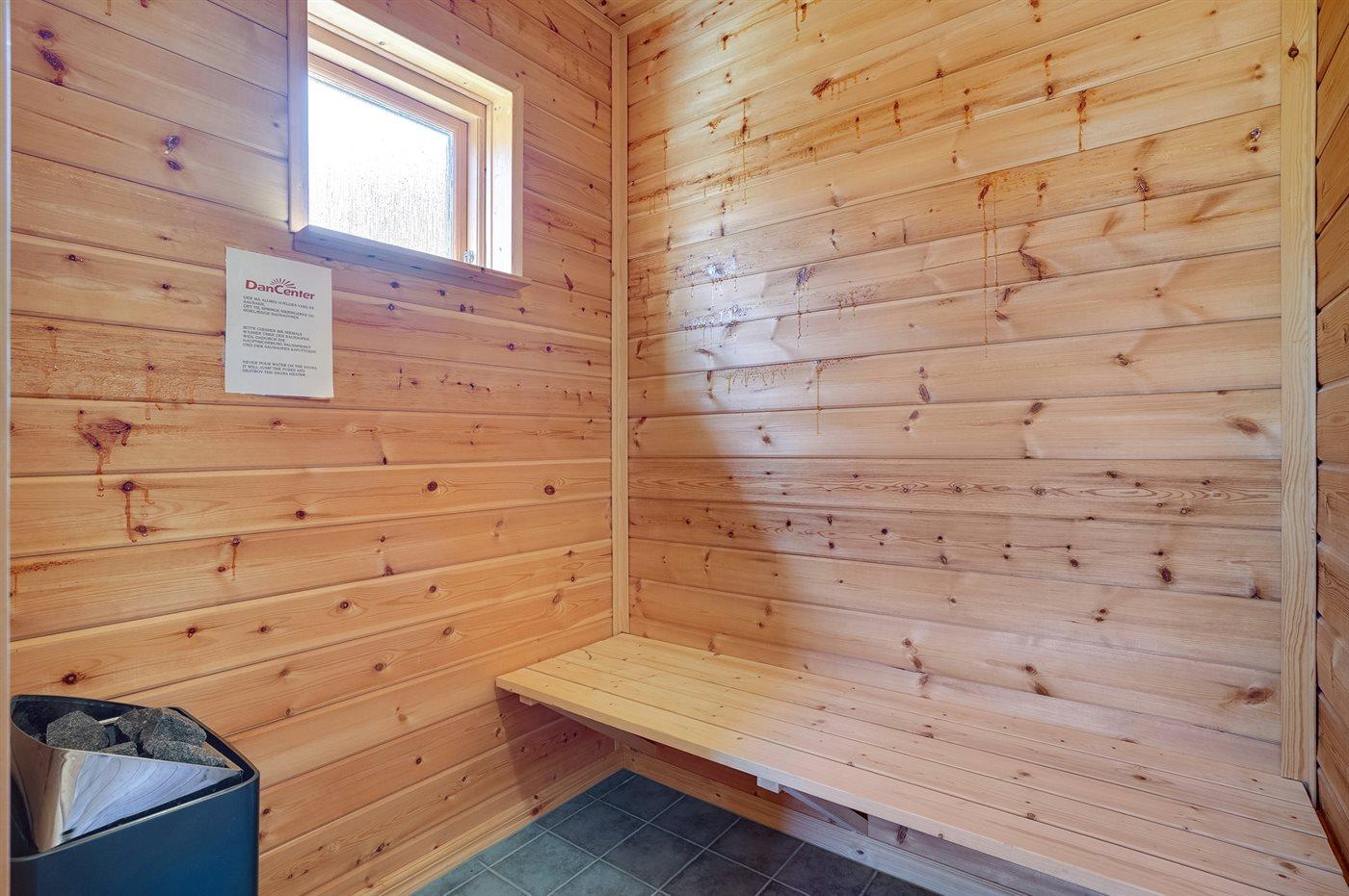 Der er 1 badeværelse med bruseniche og 2 toiletter, heraf 1 gæstetoilet. Der er gulvvarme på 1 badeværelse. Der er gulvvarme på gæstetoilettet. I saunaen er der mulighed for afslapning.