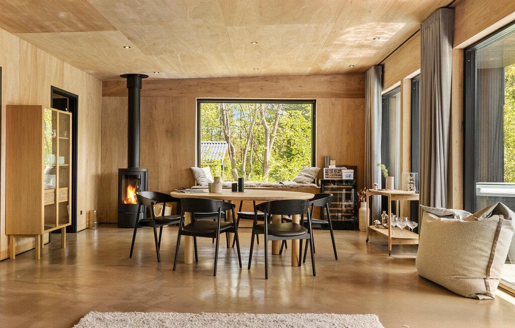 Moderne sommerhus i Fuglslev med spabad, stor terrasse og smuk udsigt til naturen.