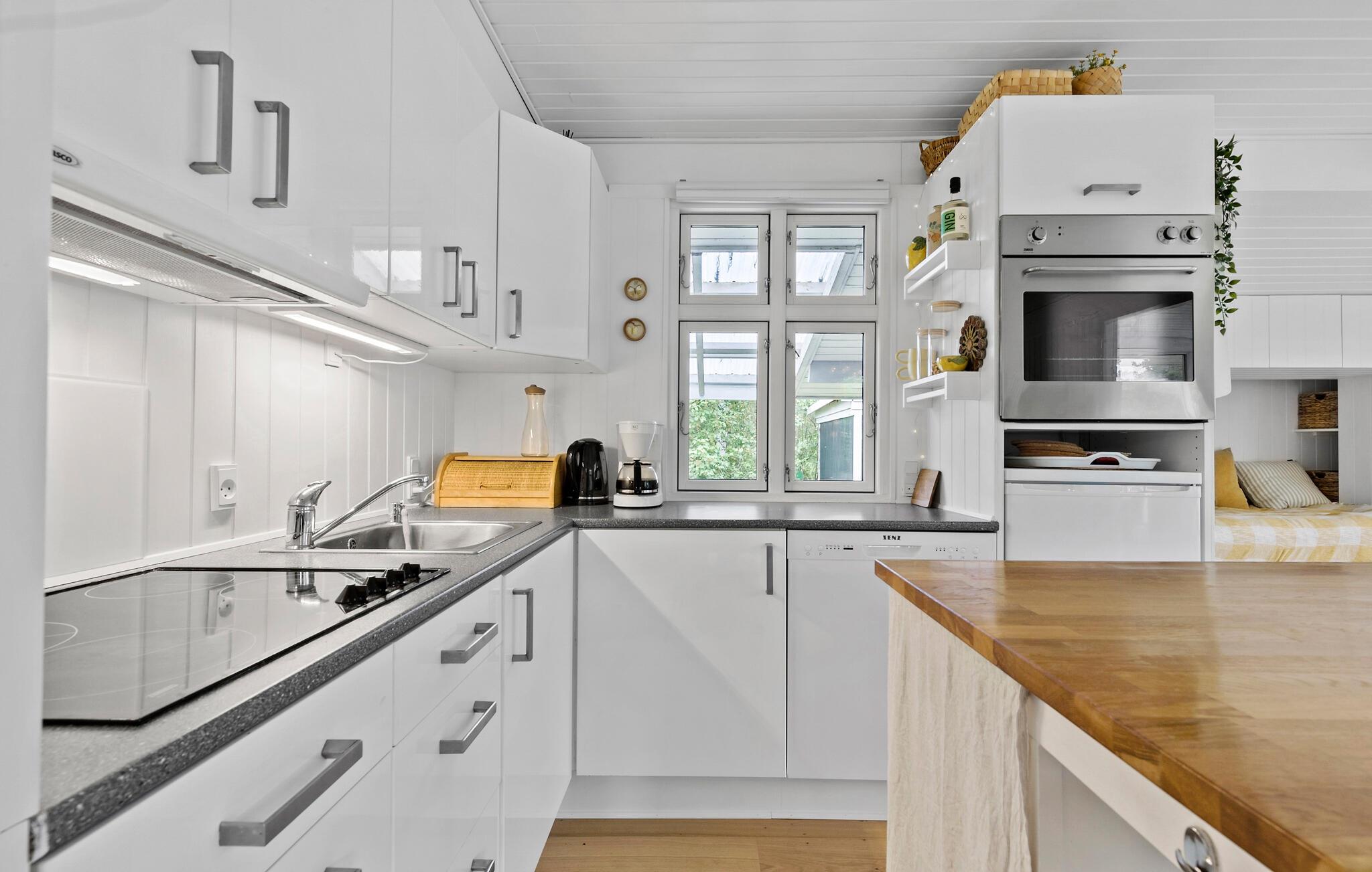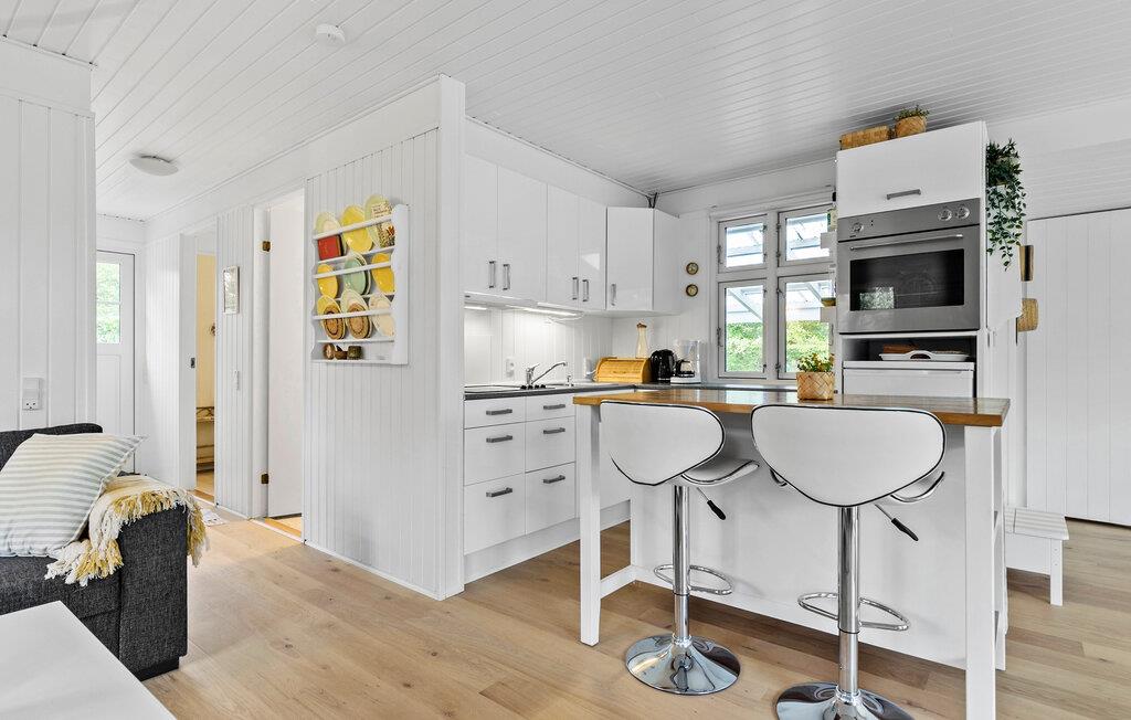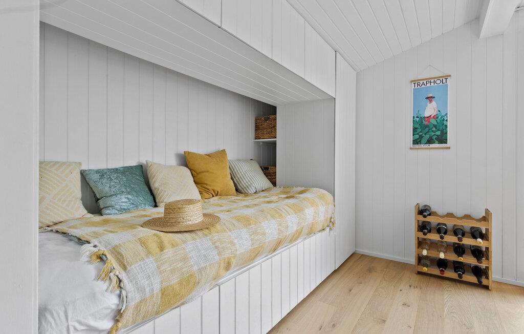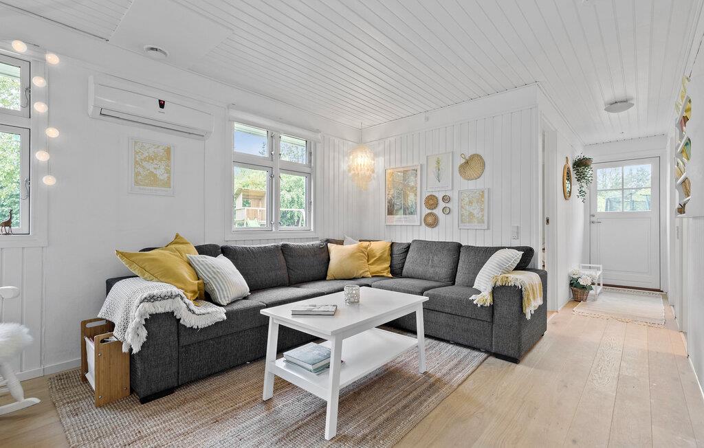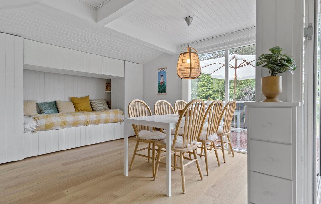 Tag familien under armen og rejs til Djursland, hvor I får base i dette indbydende hus på en dejlig, ugeneret naturgrund. Indvendigt emmer det af charme med lyse træpaneler, pæn kunst på væggene og dejlige lysindfald gennem gulv-til-loft-vinduerne. Køkkenet er veludstyret, så lad endelig familiens kokke kræse om livretterne, mens andre dækker op ved spisebordet eller læser en god bog i alkoven. Efter aftensmaden kan I hive brætspillene frem eller rykke over i sofaen med snacks og en god film, mens I lægger planer for de kommende dage.