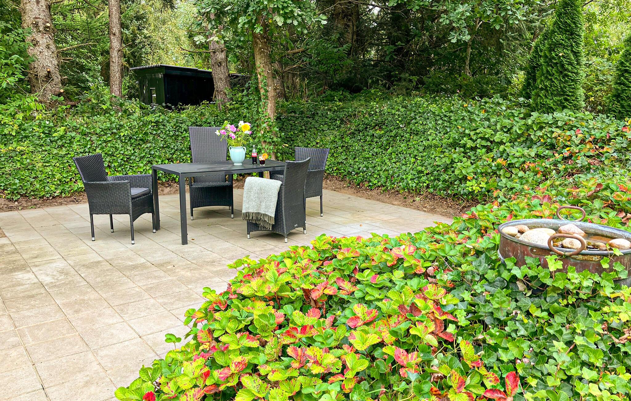 I jeres rummelige feriehus mødes rustik landstil og moderne komfort. Glæd jer til hyggelige aftener i det åbne køkken-alrum, hvor I kan lave mad sammen og nyde jeres måltider ved det store træbord. Slap af med et glas vin i de komfortable sofaer foran den knitrende pejs, eller se jeres yndlingsserie på den store Smart-TV.
