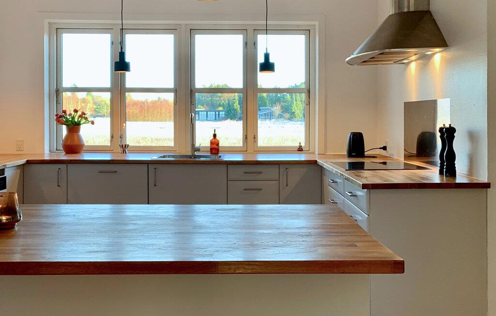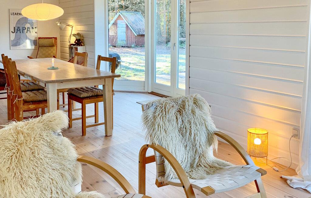 Glæd jer til rolige feriedage i dette charmerende træhus, der byder jer velkommen med en varm atmosfære og en idyllisk beliggenhed. I den lille by Fuglslev tilbringer I ferien i stille omgivelser, omgivet af skov og enge. Træd indenfor, og nyd den hyggelige stemning med lyse trævægge og store vinduespartier. Hyg jer sammen i stuen på sofaen, og mærk varmen fra den knitrende brændeovn. Det åbne køkken er moderne udstyret og har alt, hvad I behøver for at tilberede fælles måltider. Ved det store spisebord med udsigt til haven kan I samles, spille sjove spil eller planlægge dagens oplevelser.