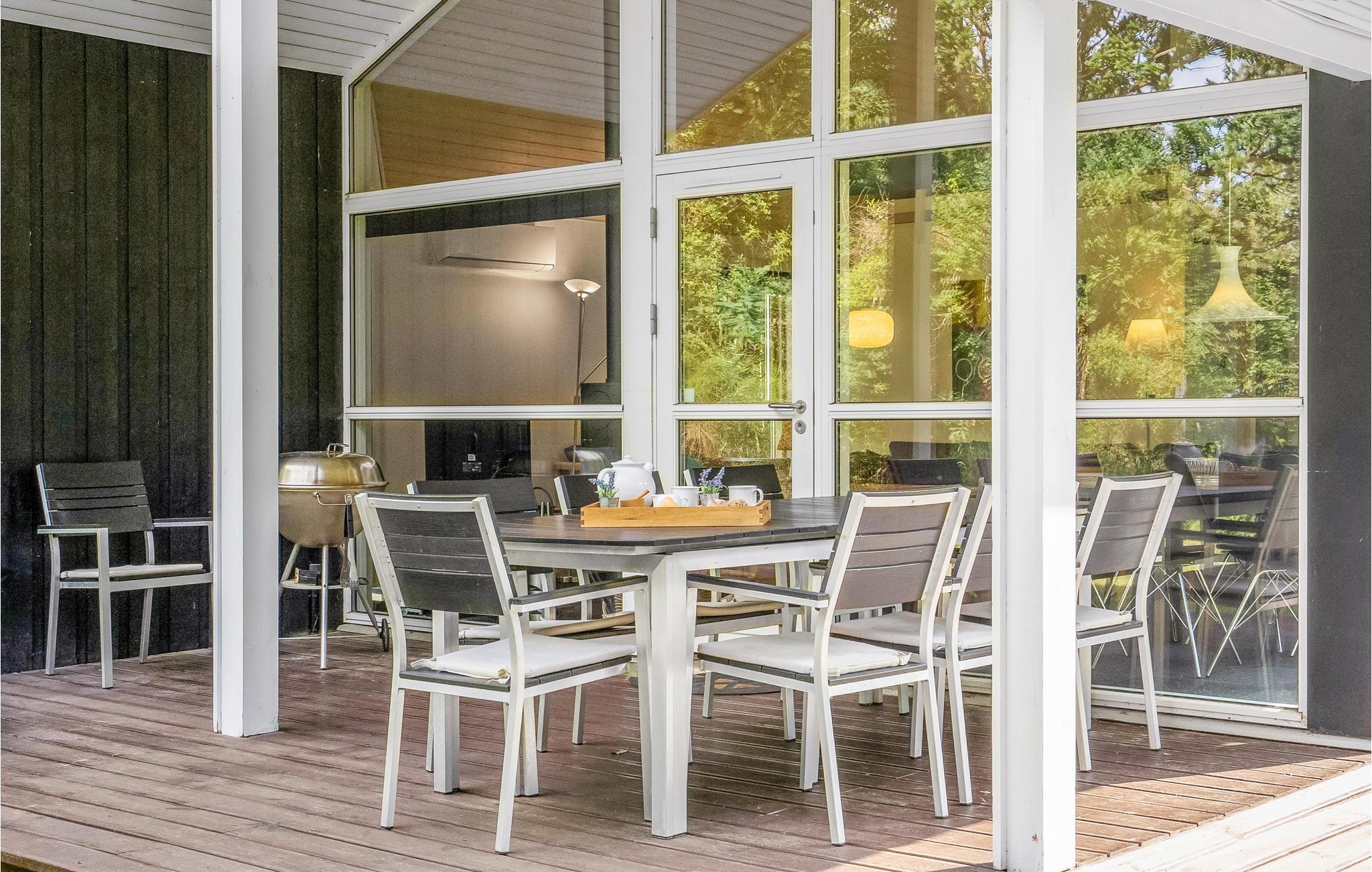 Flot feriehus nær Ebeltoft med stor terrasse, natur og moderne faciliteter til en skøn ferieoplevelse.