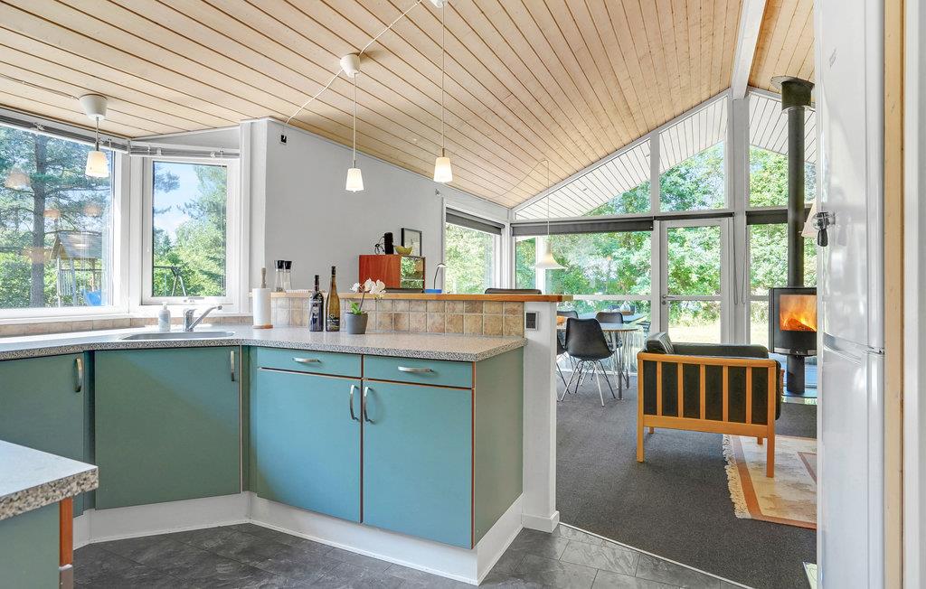 I et enestående naturområde, borte fra byens ræs og larm, men samtidig kun ca. 10 minutters kørsel fra Ebeltoft by med de charmerende gamle gader, ligger dette flotte feriehus. Her kan I nyde oplevelsen af det rige dyre- og fugleliv lige uden for døren. Huset er veludstyret og smagfuldt indrettet med moderne møbler, der på flot vis matcher interiøret. Da der er direkte udgang til den store terrasse fra både køkken og stue, er det nemt og bekvemt at komme ud og nyde udelivet og naturen.