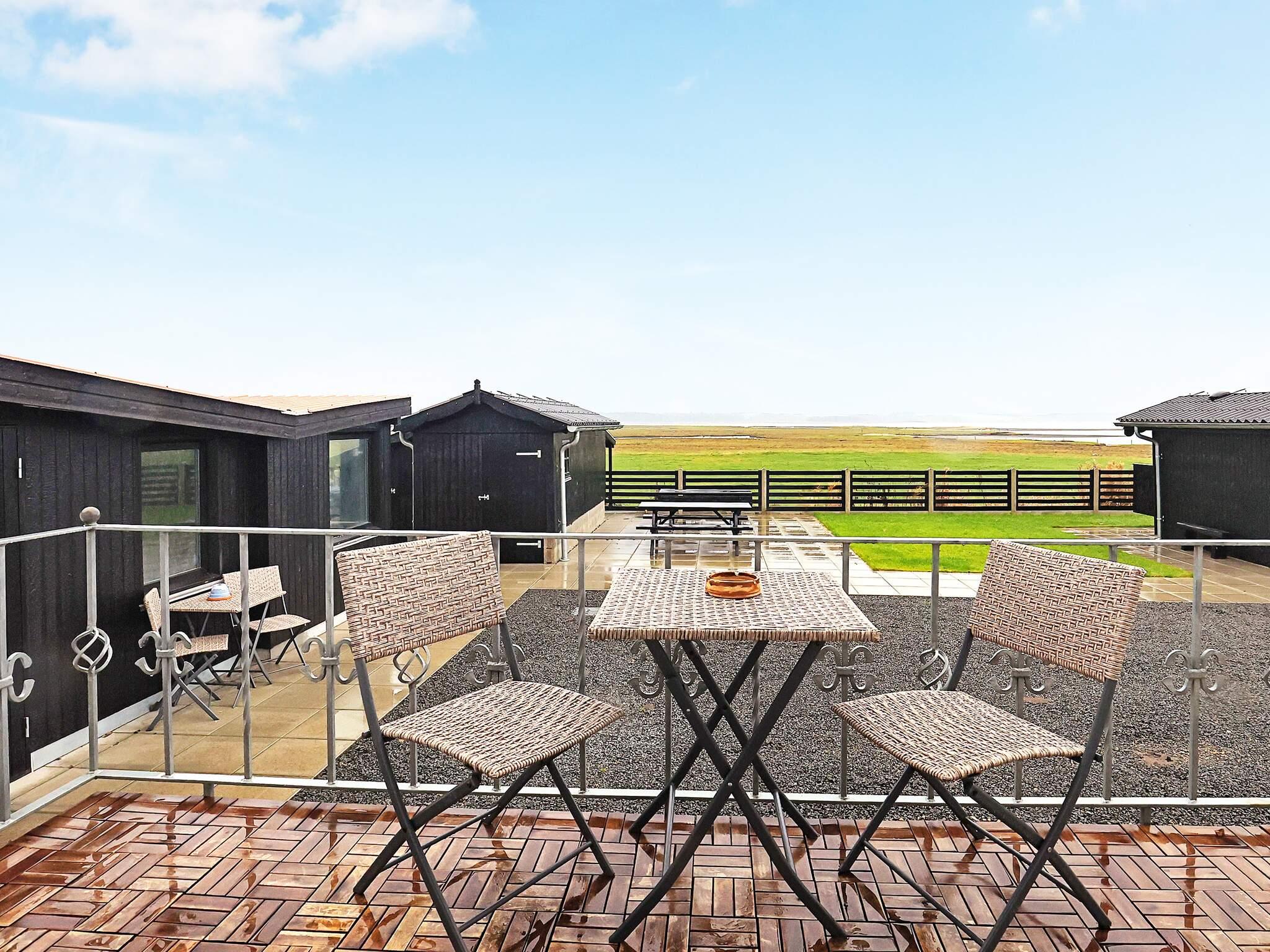 Huset har flere åbne terrasser med komfortable havemøbler, liggestole og en gasgrill, hvor du kan nyde aftensmaden, mens du ser solen gå ned over fjorden. Derudover byder huset på to shelters (en børneudgave og en voksenudgave), ligeledes med panoramaudsigt over vandet.