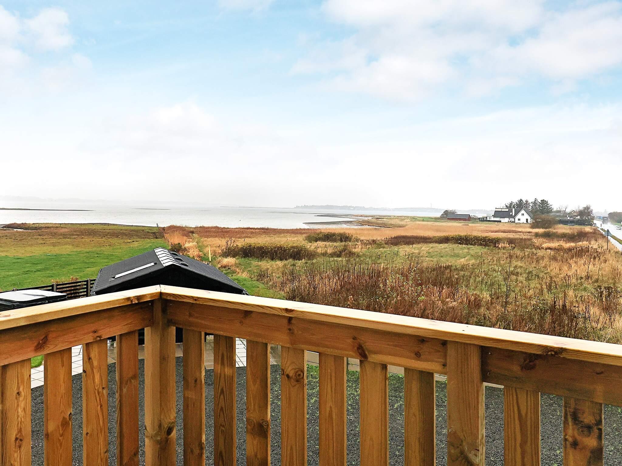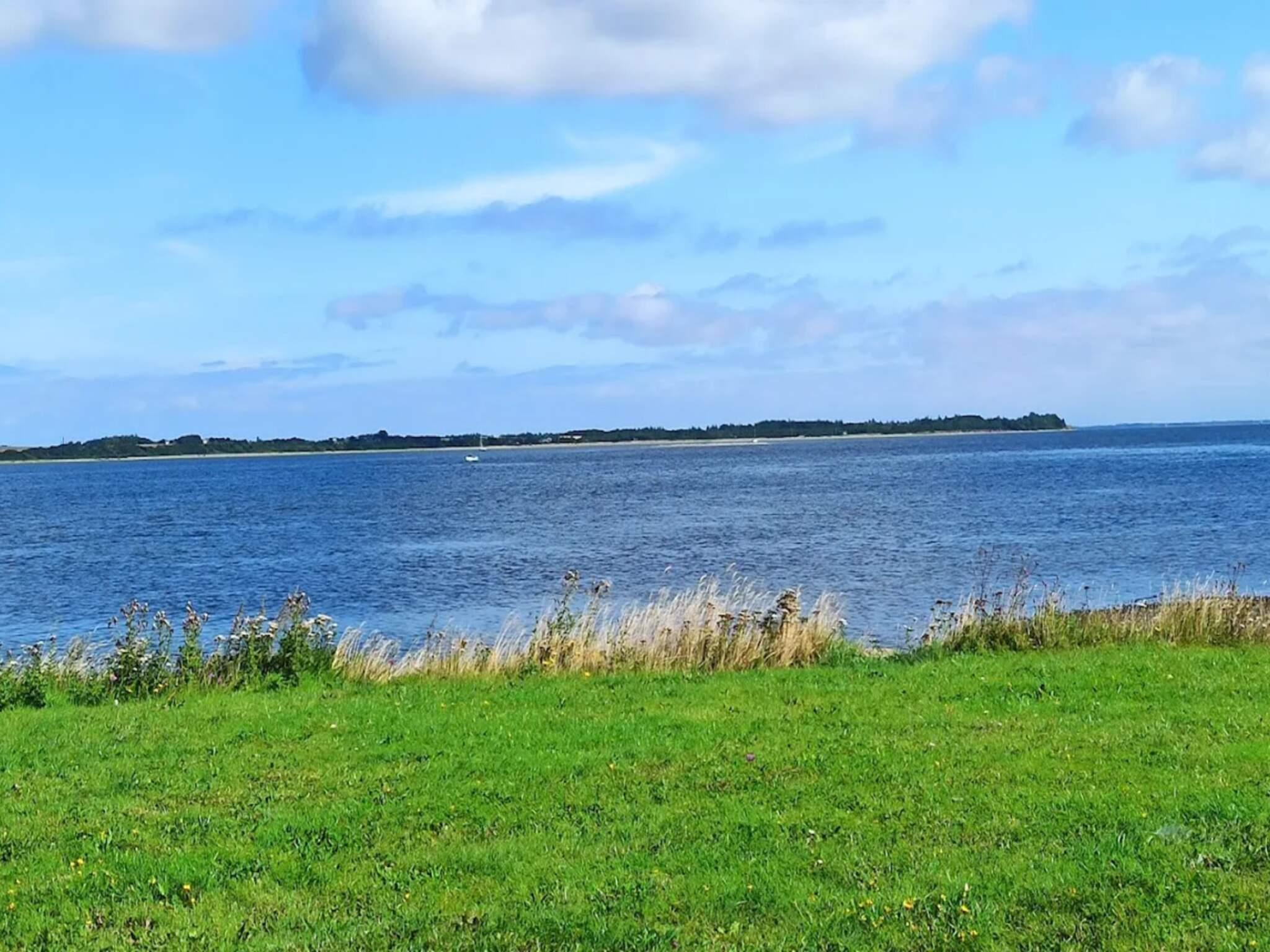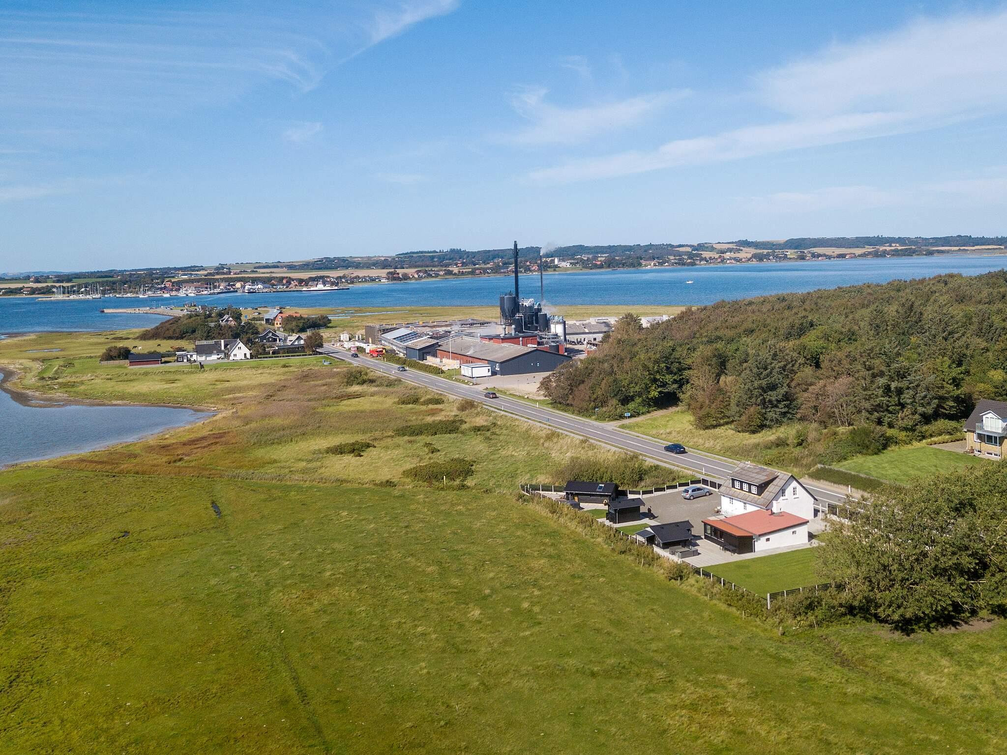 Velbeliggende og velholdt feriehus med 7 personers udendørs spabad (sommer) og panoramaudsigt over Limfjorden, både inde og ude, beliggende kun cirka 100 meter fra fjorden og cirka 900 meter fra færgeterminalen ved Branden.