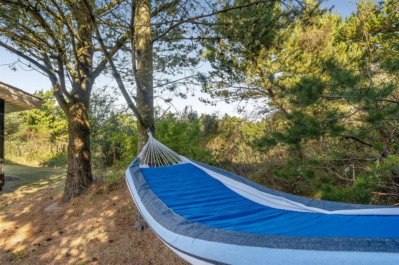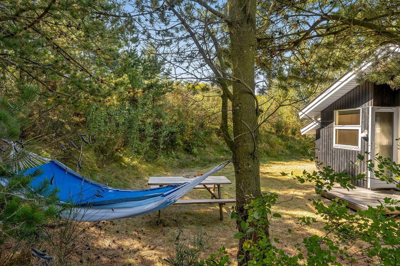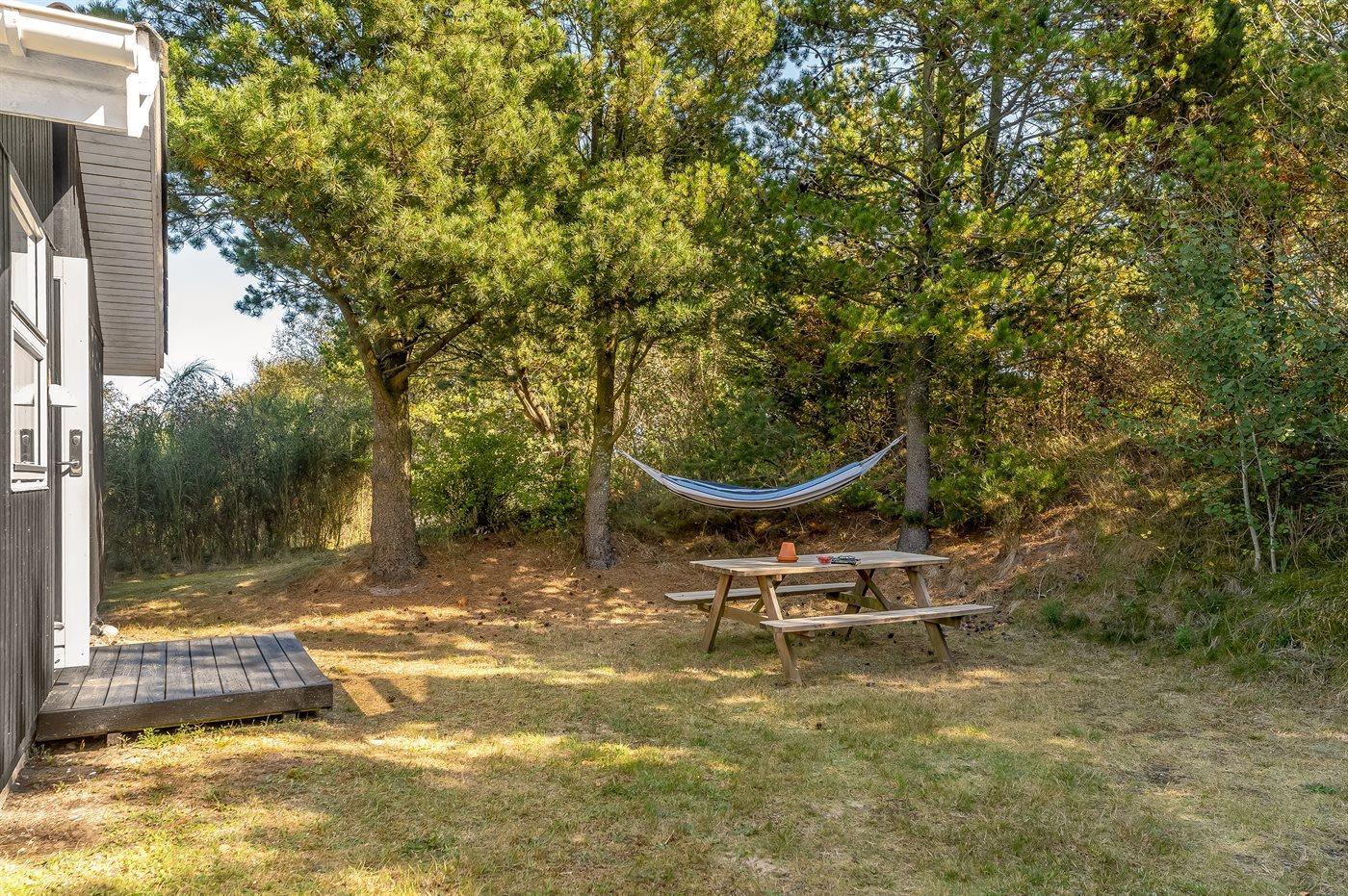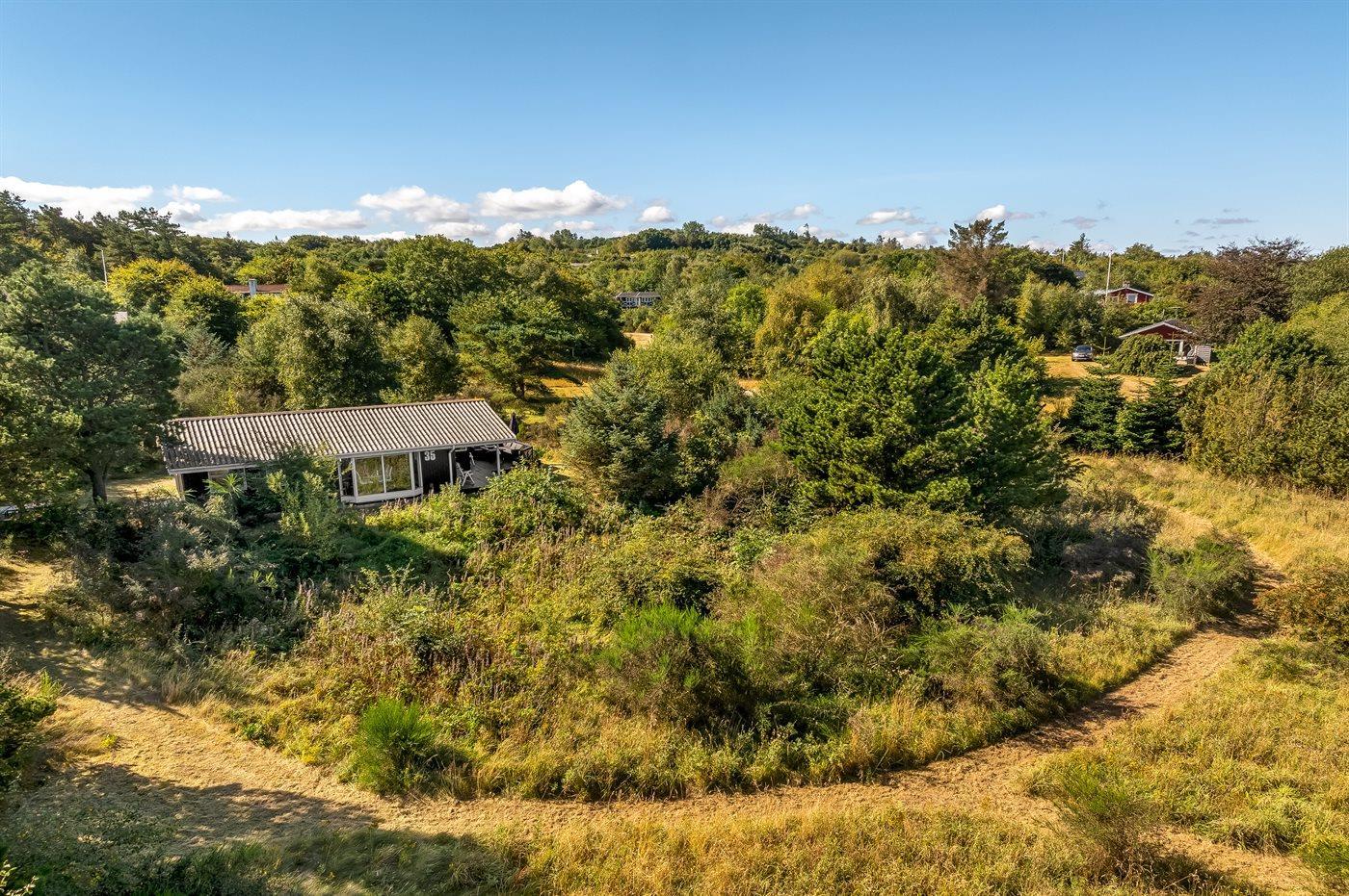 Ferieboligen er beliggende på en 3263 m² stor grund i skov/plantage. Der er 250 m til fjorden. Nærmeste forretning er beliggende i en afstand af 7500 m. Til ferieboligen hører åbent terrasseareal. Desuden er der overdækket terrasse. Parkering ved ferieboligen.