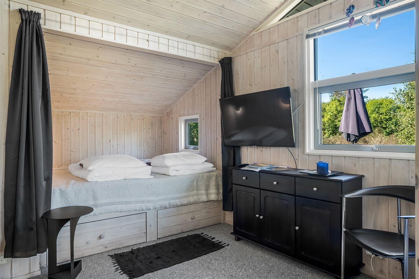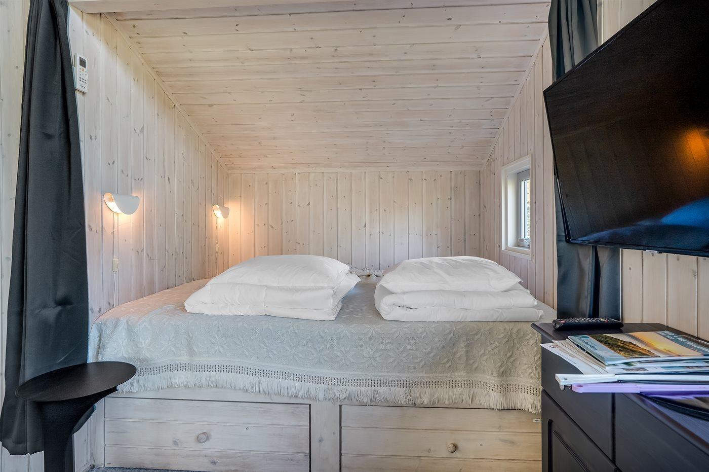 Der er i alt 4 soveværelser. Sovepladserne fordeler sig på: 4 sovepladser i dobbeltsenge. 1 soveplads i enkeltseng. 2 sovepladser i alkove.