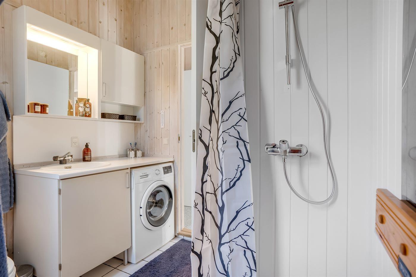 Der er 1 badeværelse med bruser og 1 toilet. I saunaen er der mulighed for afslapning.