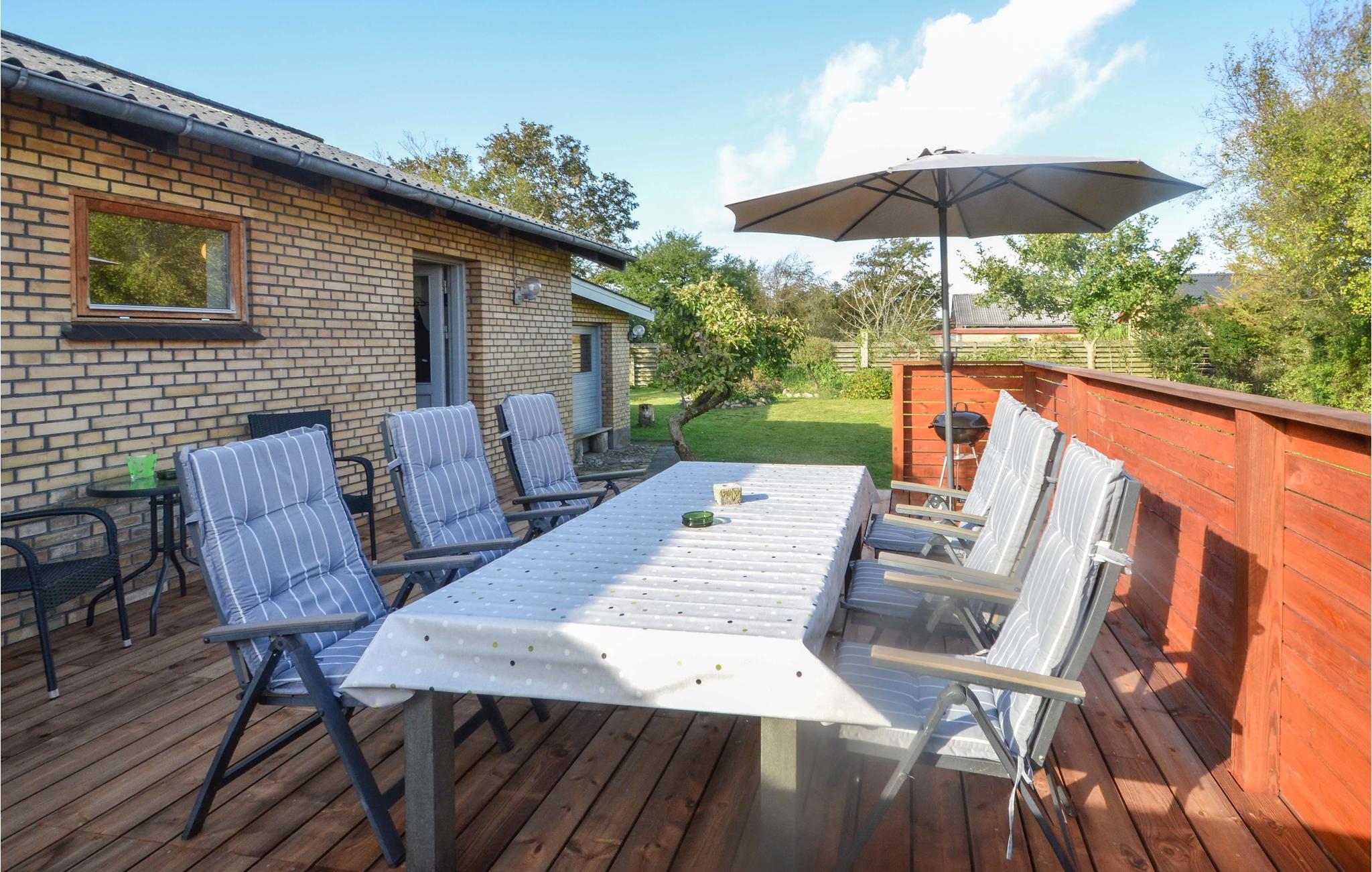 Her kan hele familien nyde hinandens selskab i det store åbne køkken, som ligger i forlængelse af opholdsstuen og spisestuen. Køkkenet er veludstyret med blandt andet opvaskemaskine, kaffemaskine og mikroovn. I badeværelset er der gulvvarme og vaskemaskine. På de lune sommeraftener kan I glæde jer til at slappe af på den fine træterrasse, hvor I også kan nyde jeres måltider både morgen og aften. I haven kan familiens yngste medlemmer få mange timer med at gå, her er masser af plads til leg og spil, og gyngen i det ene træ vil helt sikkert være et hit.