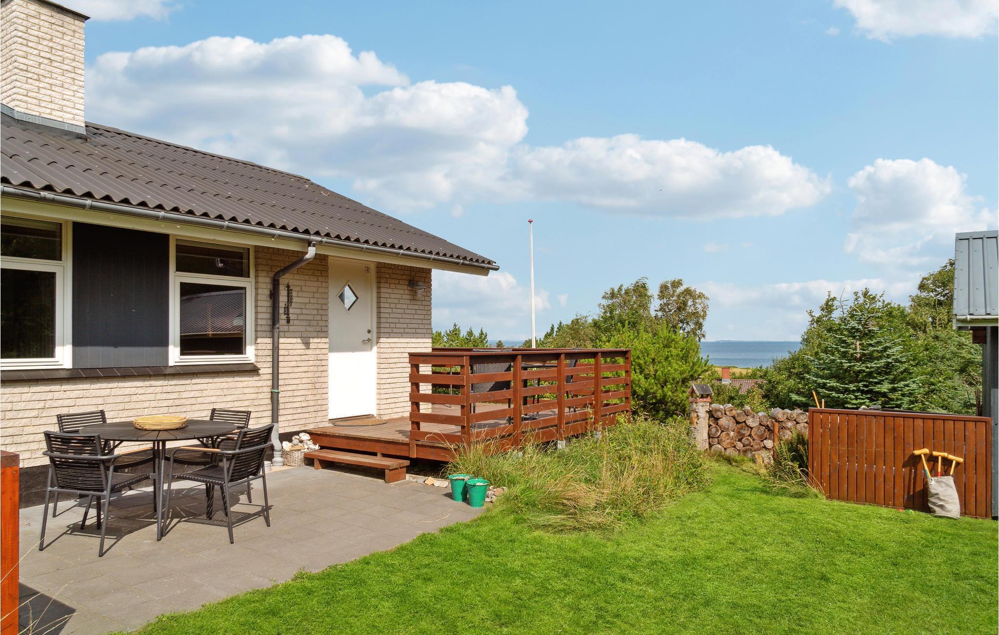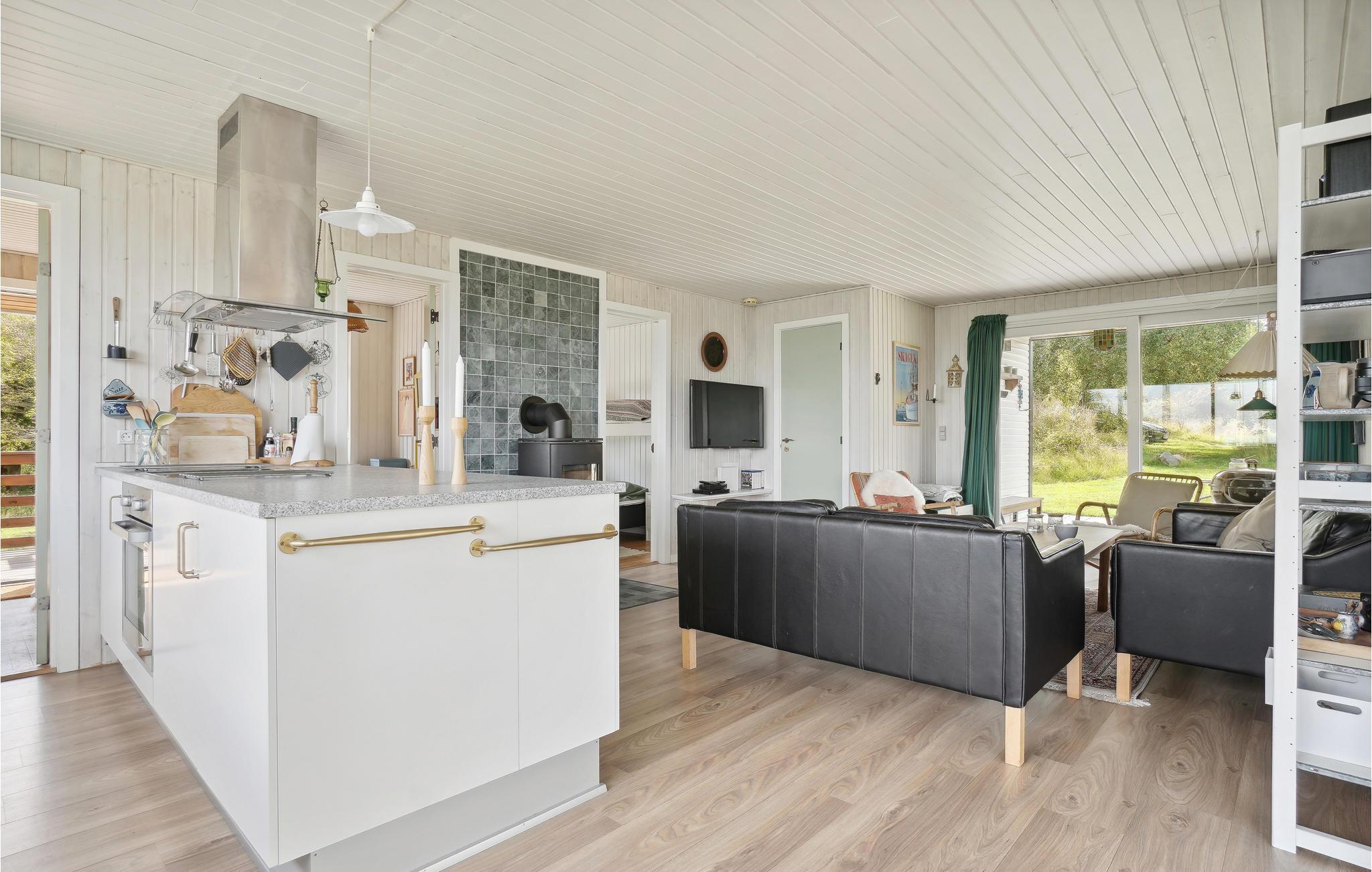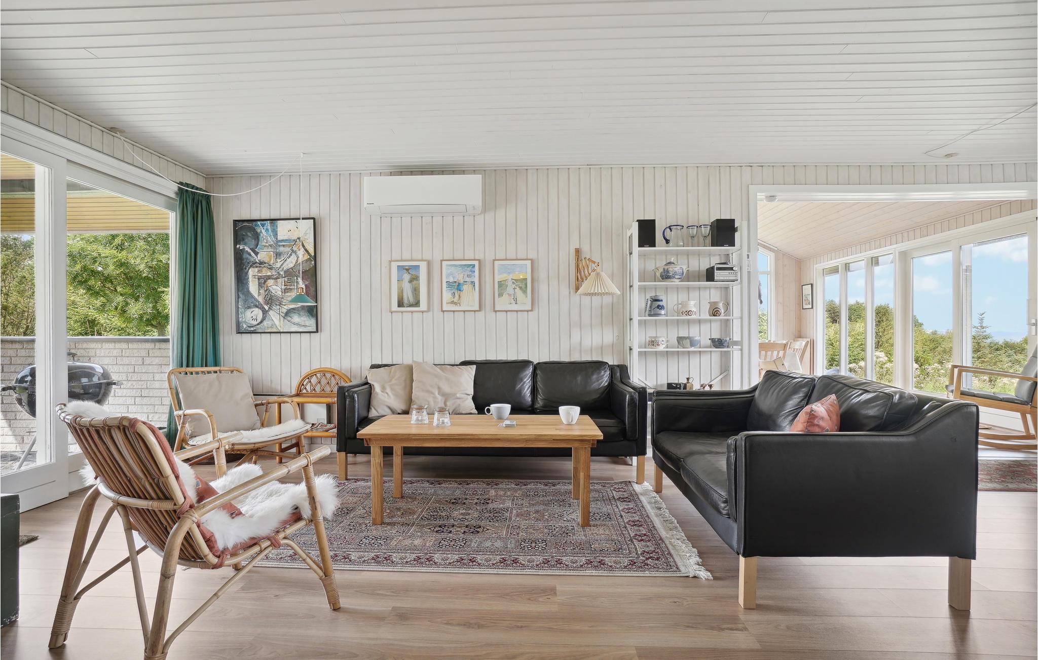 Charmerende sommerhus på Fur med panoramaudsigt over Limfjorden og stor havestue med store vinduer.