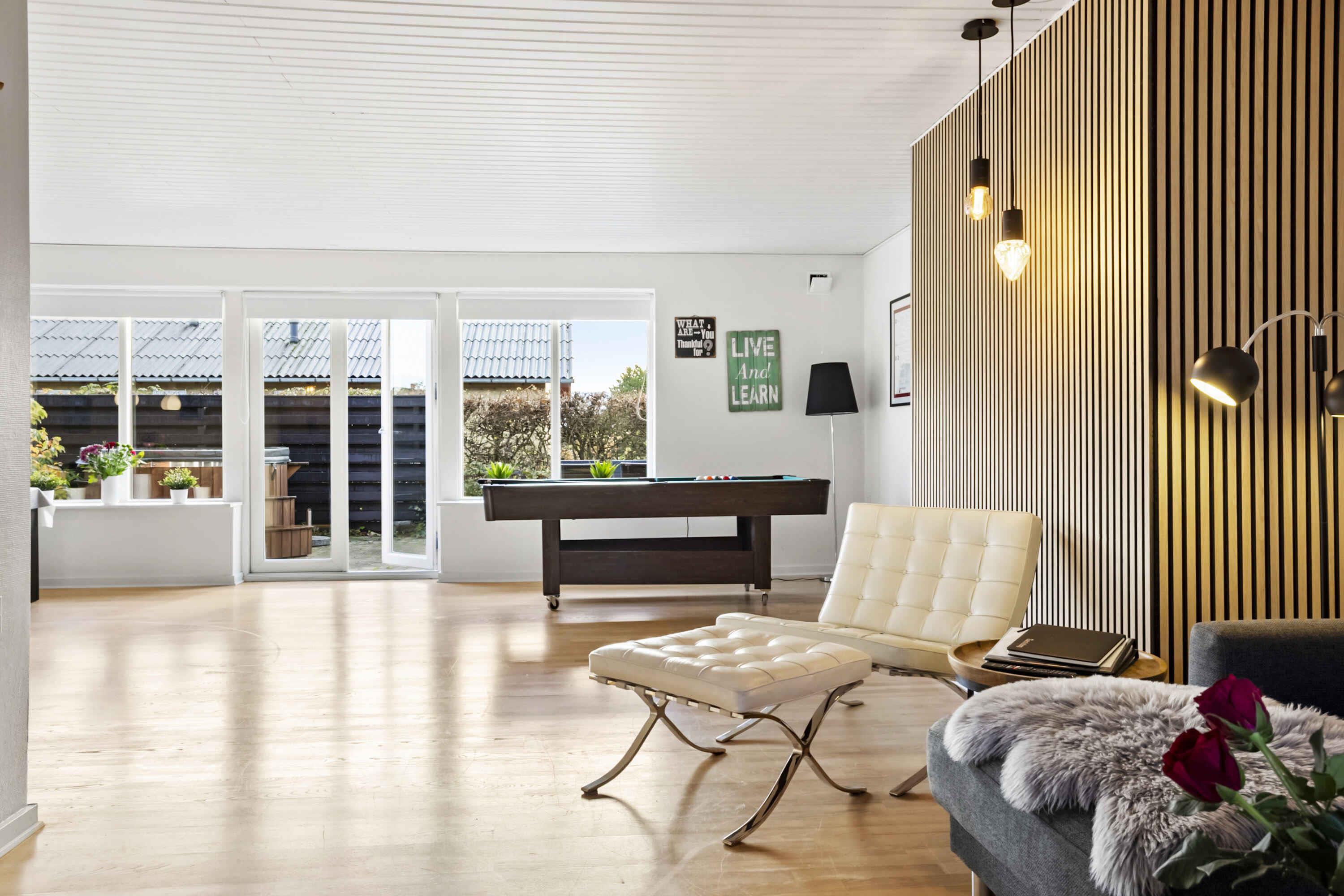 Rigtig lækkert feriehus der indeholder bl.a. 6-personers el-opvarmet Vildmarksbad, aktivitetsrum med bl.a. pool og bordfodbold. Hele herligheden er beliggende kun ca. 150 meter fra vandkanten på den naturskønne ø Fur. Ferieboligens grund er samlet på 680 m². Baghaven er udlagt i græs og giver jer rig mulighed for at nyde ferien i fred og ro, eller være aktive med leg og boldspil. Omkring huset findes flere forskellige hyggekroge, som er et oplagt sted til afslapning med en god bog, mens ungerne leger i haven eller nyder det lækre og store Vildmarksbad. Terrassen og haven er samtidig hegnet ind, så mindre børn og dyr kan færdes sikkert og frit rundt. Huset giver mulighed for masser af forskellige aktiviteter og er en oplevelse i sig selv. Her er der mange timers underholdning både for børn og voksne. Af aktiviteter kan nævnes billard, bordfodbold, udendørs dart, stigegolf og gyngestativ med rutchebane i haven. Ferieboligen fremstår lys og indbydende. Huset er godt og praktisk indrettet med kombineret køkken/alrum/stue. Der er gulvvarme i stue, køkken, begge badeværelser samt gangarealer og opvarmes hovedsageligt med fjernvarme. Dermed er der god mulighed for at spare på forbruget. Huset tilbyder også oplader til el-bil. Kvalitetskøkkenet byder bl.a. på keramiske kogeplader, emhætte, separat varmluftovn med grill, mikrobølgeovn, opvaskemaskine, kaffemaskine, køleskab samt separat kummefryser på min. 100 liter. Stuen har moderne møblement, gratis high-speed internet (500/500) samt Smart-tv med Chromecast, hvor I har mulighed for at streame egne TV-tjenester. Der er også biopejs, der vil lune jer på en kølig sommeraften eller en efterårsaften med regn og rusk. Lyst badeværelse med bademiljø, toilet samt bruser. Gæstebadeværelse med toilet. Derudover er der vaskemaskine og tørretumbler i huset. Sommerhuset har fire soveværelser heraf 2 værelser med dobbeltseng og køje samt 2 værelser med dobbeltsenge. Huset egner sig til 8 voksne og 2 børn. Huset byder på en stor og dejlig terrasse, der både er åben og overdækket. Har findes gode havemøbler, liggestole, sandkasse med redskaber samt kulgrill. Her kan I nyde aftensmaden, eller et glas vin mens solen går ned over området. Det er også på terrassen husets 6-personers Vildmarksbad findes. Ferieboligen er yderst velbeliggende med kun ca. 150 meter til vand, strand med badebro og Furs havnemiljø med lystbådehavn, færge, butikker og spisesteder. Har man ikke nok i husets aktiviteter finder man Ca. 250 meter fra huset et stort grønt område med legeplads, bord/bænkesæt, multibane samt minigolf mv. (Udstyr til minigolf lejes på stedet). Det er tilladt at medbringe 2 husdyr. PRISEN ER INKL. SLUTRENGØRING. Feriehuset ligger på den naturskønne ø, Fur i Limfjorden. Færgen mellem Fur og Branden sejler hele døgnet – hele 72 gange i døgnet. Sejladsen tager cirka 4 minutter, og det er ikke nødvendigt at booke billetter på forhånd. Fur er bl.a. kendt for fossiler, stejle klinter og smukke udsigter over land og fjord. Et landskab skabt af kiselalger, vulkansk aske, is, vand og mennesker. Fur er også kendt for sine øl, for grundvandet på Fur helt unikt til ølbrygning.