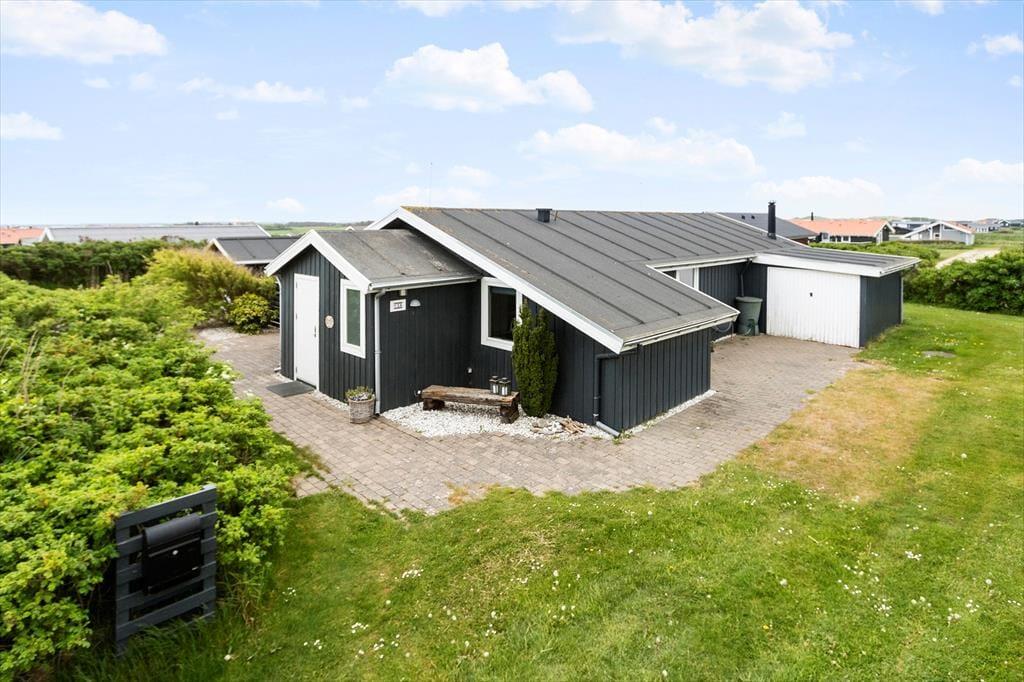 I får god plads at brede jer på i dette lyse og velindrettede sommerhus, som ligger godt placeret på en stor, solrig grund med både gårdhave og skønne terrasser. Fra huset er der få hundrede meter til Vesterhavet, og I kan køre til den hyggelige ferieby Løkken på under fem minutter.
