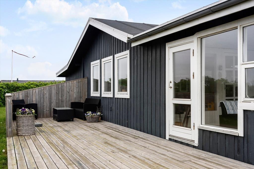Fra udestuen er der udgang til en østvendt terrasse med morgensol på den ene side og en sydvestvendt gårdhave på den anden side. Her kan I med andre ord selv vælge, om I vil have sol eller skygge, når feriedagene skal nydes under åben himmel, og I får fine betingelser for at servere måltiderne ude i det fri. Er I af sted med børn, kan I glæde jer over den store græsplæne bag huset, som giver jer god plads til leg og boldspil.