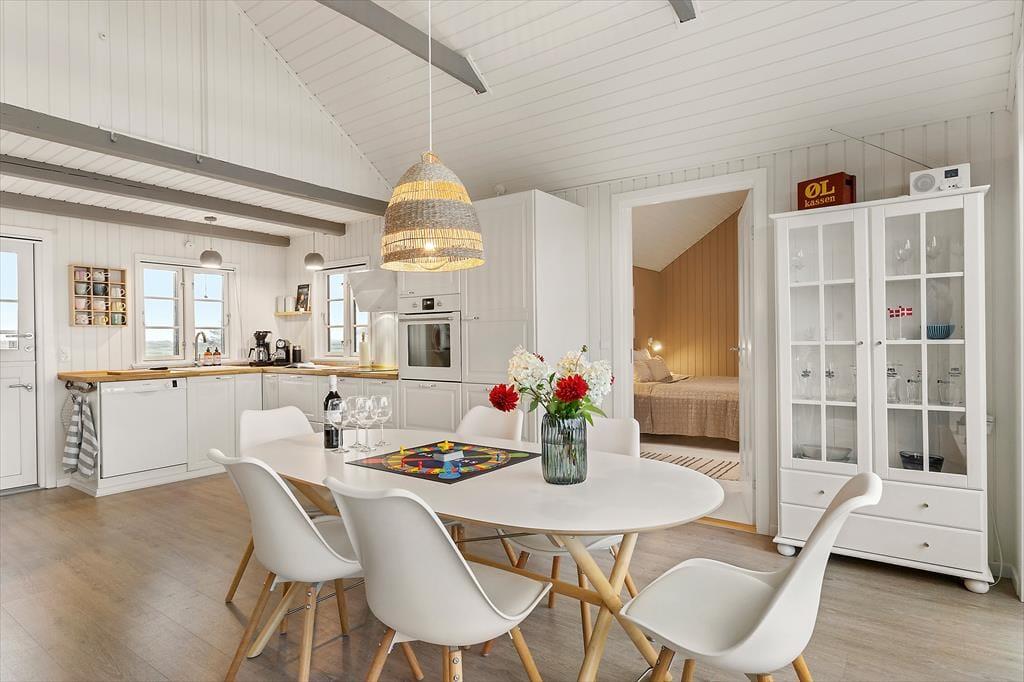 Dette dejlige kvalitetshus med helårsisolering ligger skønt placeret i det fredelige og naturskønne sommerområde ud mod Furreby Strand. Vesterhavet og stranden venter mindre end 200 meter væk, og på ferieadressen forsødes livet af de solrige terrasser, stuens brændeovn og den gennemgående skønne atmosfære.