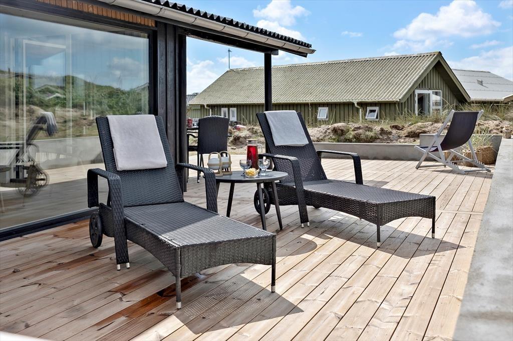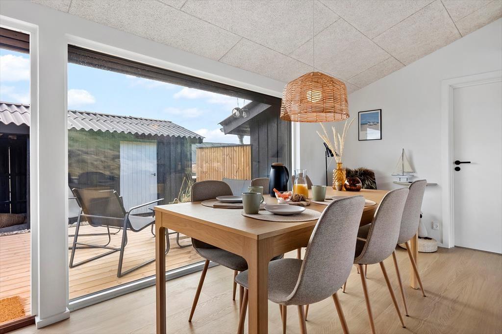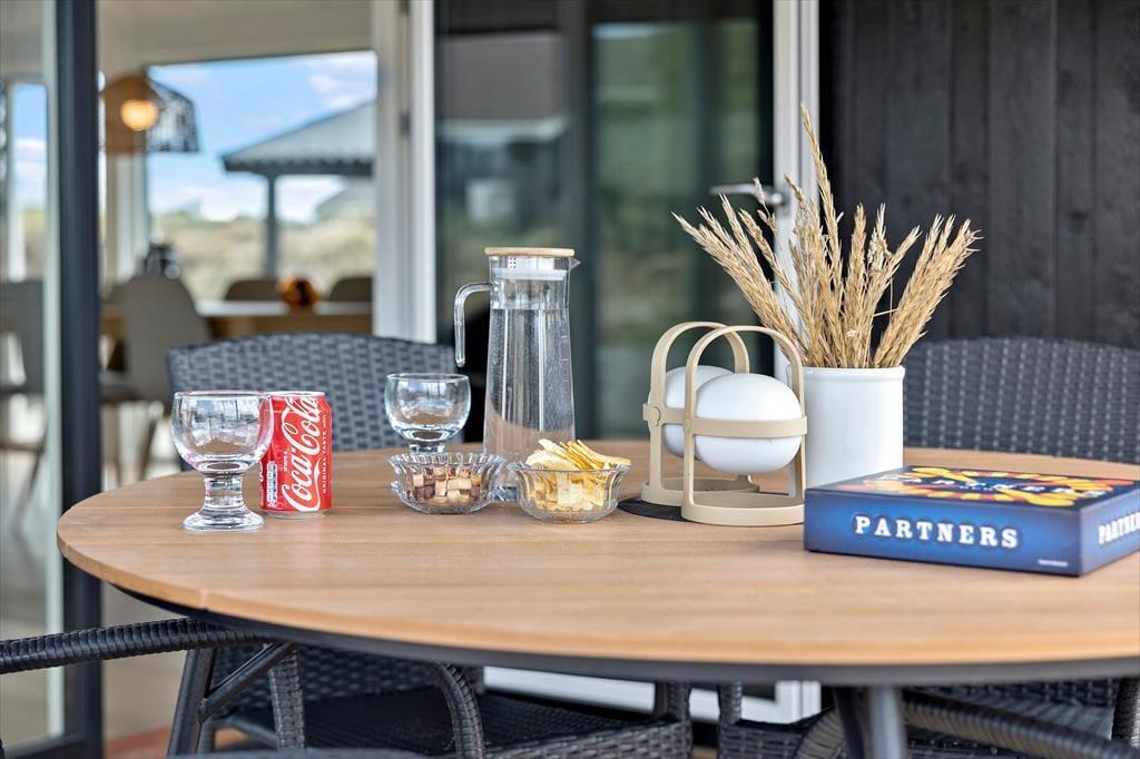 Terrasserne er hjertet i udelivet her på Tranevej 17. Her kan du starte dagen med en kop kaffe i morgensolen, nyde frokosten under åben himmel og runde aftenen af i det varme udendørs spabad, mens du kigger op på stjernerne. De to overdækkede terrasser giver mulighed for at være ude – uanset vejret – og skaber hyggelige rammer for lange sommeraftener. Spabadet er en luksuriøs detalje, som giver ferien et ekstra pift – og det bliver hurtigt et fast ritual at lade sig synke ned i det varme vand efter en lang dag i den friske havluft.