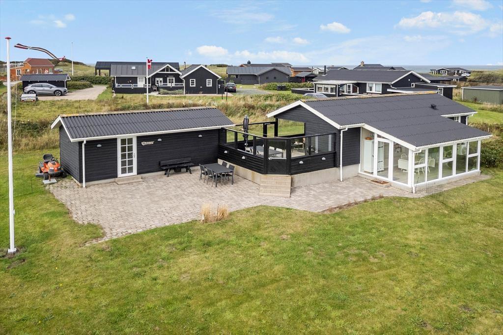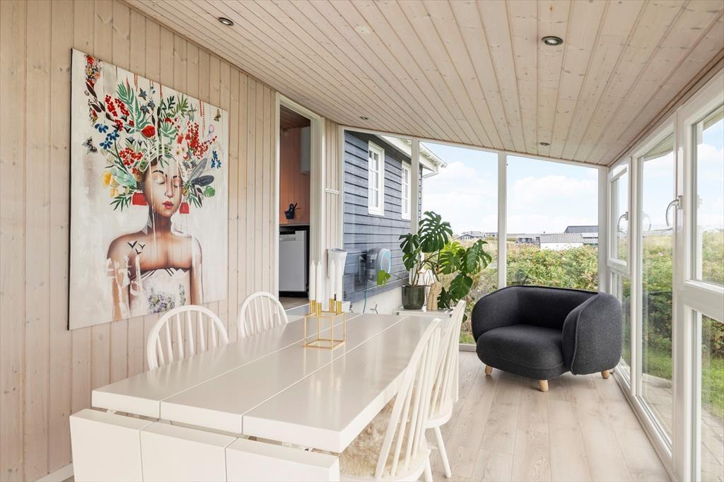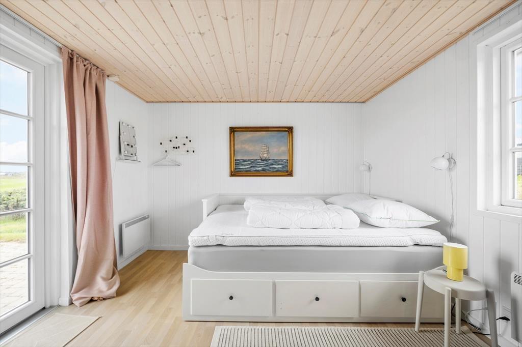 Her er rammerne til en ferie, hvor udelivet virkelig kan nydes. På terrassen kan I samles om grillmiddage eller slappe af i havemøblerne, og den praktiske læmur skaber en hyggelig oase, hvor I kan sidde uforstyrret, selv når vestenvinden rusker. Haven giver plads til leg og boldspil for familiens yngste, mens de voksne kan nyde solens varme stråler eller en kølig drink i skyggen. Huset er desuden hundevenligt, så familiens firbenede ven kan naturligvis også være med på ferien – og den korte afstand til stranden gør det nemt at gå lange ture med hunden langs vandkanten. Når aftenen falder på, er det oplagt at trække ind i udestuen igen og nyde roen, mens mørket sænker sig over landskabet.