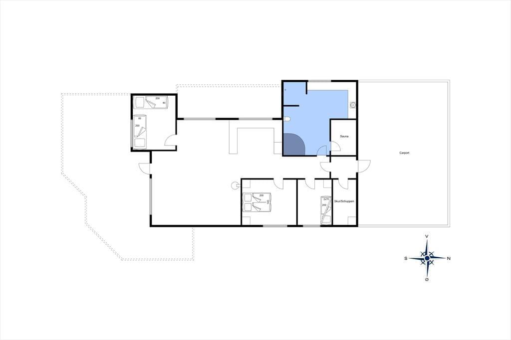 Huset er personligt indrettet og fremtræder med sine store vinduespartier lyst og venligt. Samlingspunktet er ved brændeovnen i stuen, hvor der kan tilbringes mange hyggelige timer – enten i sofagruppen eller ved spisebordet, som er placeret ved det åbne køkken. Huset råder over 3 soveværelser med henholdsvis, dobbeltseng, enkeltsenge og en køjeseng. På det store badeværelse er der adgang til både spabad og sauna. I huset er der gratis WiFi tilgængeligt, så husk blot at medbringe en computer eller tablet.