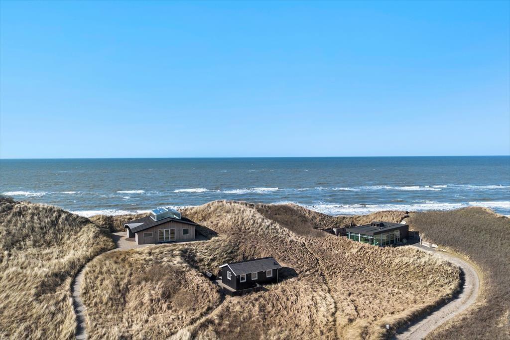 Sommerhuset ligger på en skrånende klitgrund og dermed højt i landskabet, hvilket er forklaringen på det flotte panoramavue ind mod land. Udsigten er særligt flot fra den østvendte terrasse, mens det vestvendte terrasseområde ligger mere ugeneret ind mod klitten.
