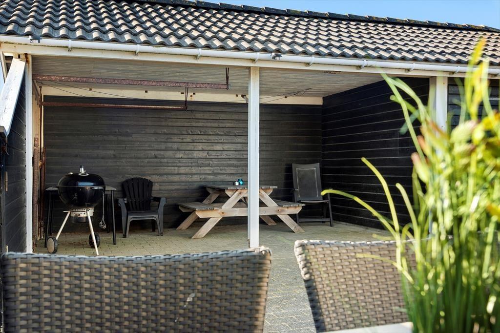 Den flotte grund byder på leg og aktiviteter, og på den hyggelige lukkede terrasse mellem sommerhuset og carporten, er man helt for sig selv.