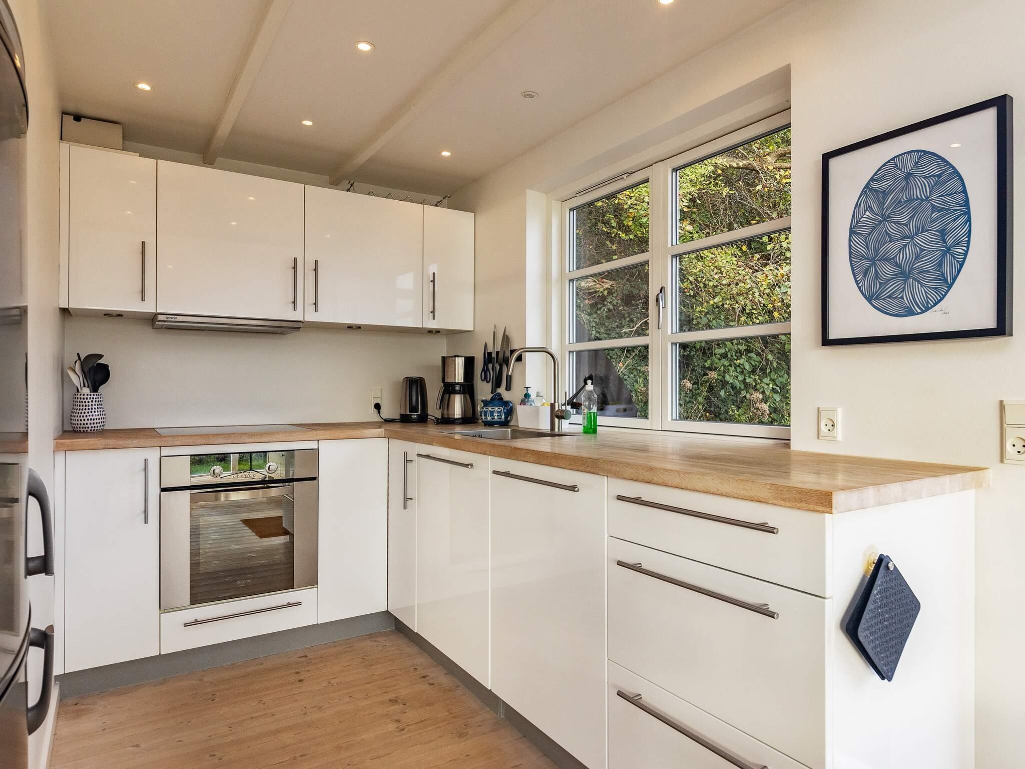 Køkkenafd.: El-komfur, køle-frys, mikroovn, emhætte, kaffemaskine, opvaskemask.