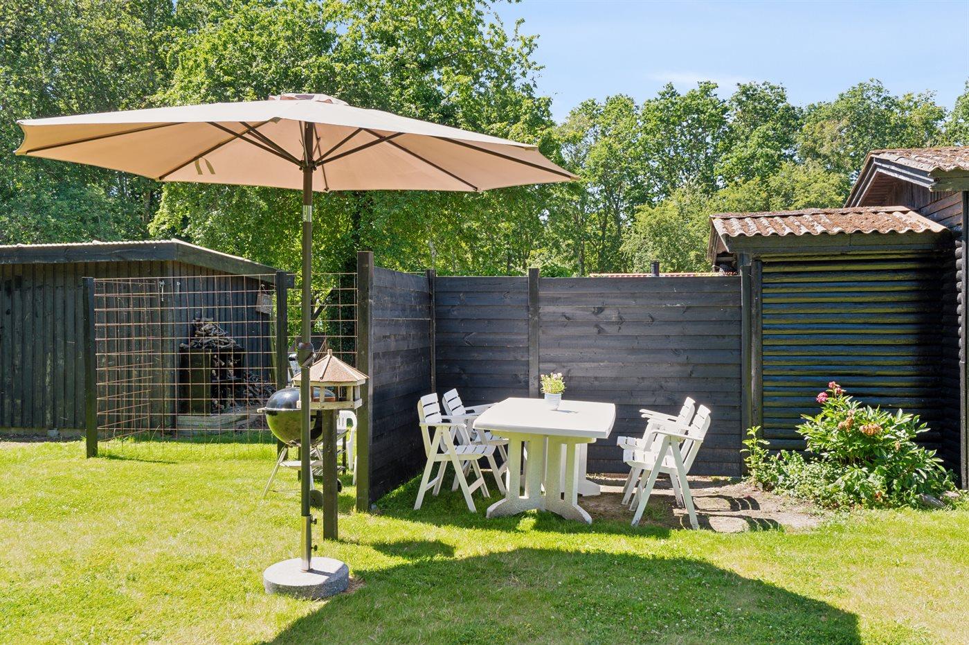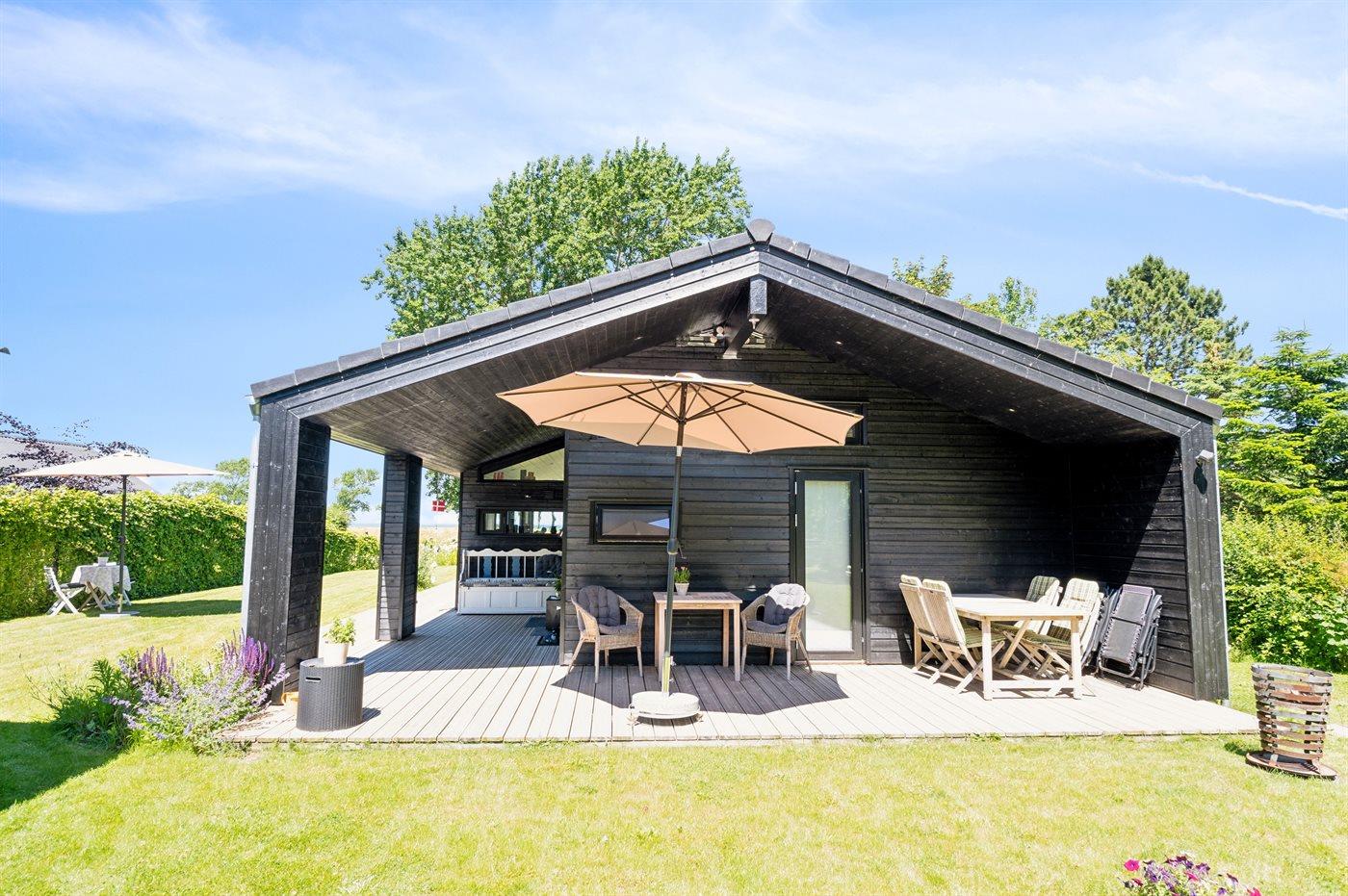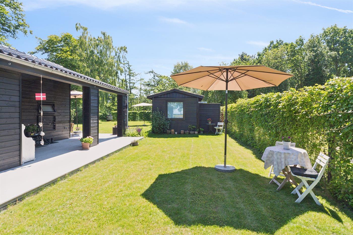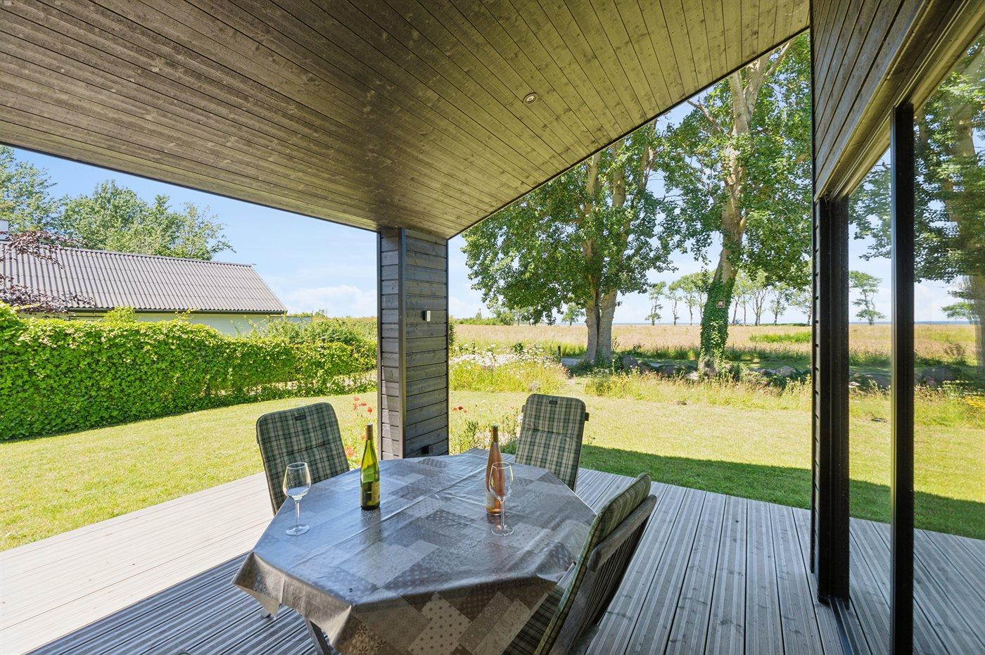 Ferieboligen er beliggende på en 850 m² stor havegrund. Der er 100 m til havet. Nærmeste forretning er beliggende i en afstand af 12000 m. Til ferieboligen hører åbent terrasseareal. Desuden er der overdækket terrasse. Bålsted. Grill til rådighed. Der er installeret stik til opladning af elbil. Type 2 stik. Med 11 kW ladeeffekt. Parkering ved ferieboligen.
