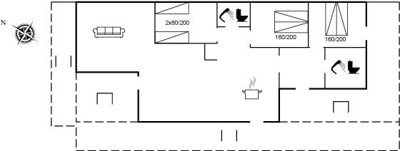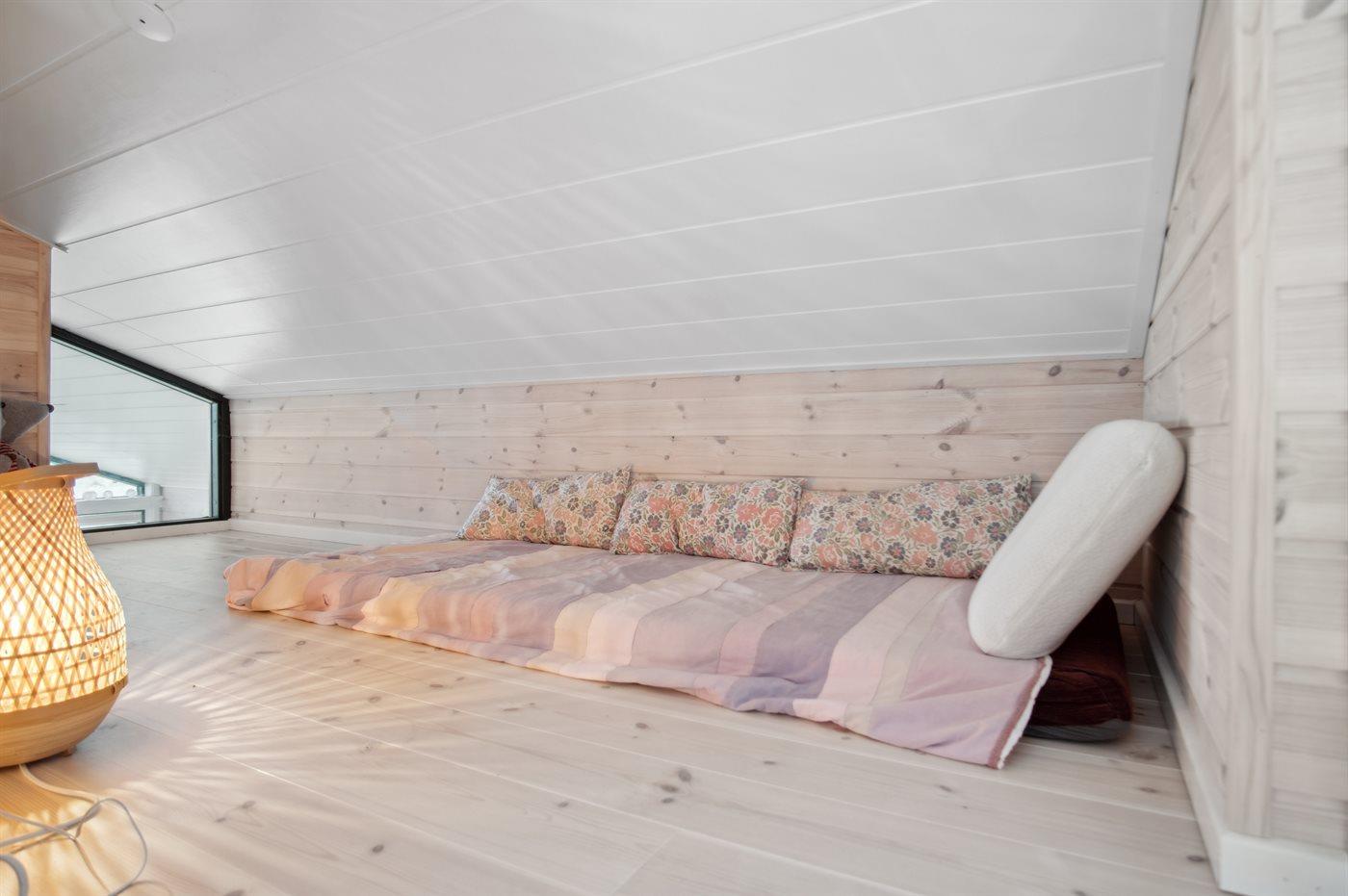 Der er i alt 3 soveværelser. Sovepladserne fordeler sig på: 4 sovepladser i dobbeltsenge. 2 sovepladser i enkeltsenge. 2 sovepladser på madrasser. 2 af disse sovepladser befinder sig på husets hems. Derudover er der 1 stk. barneseng.