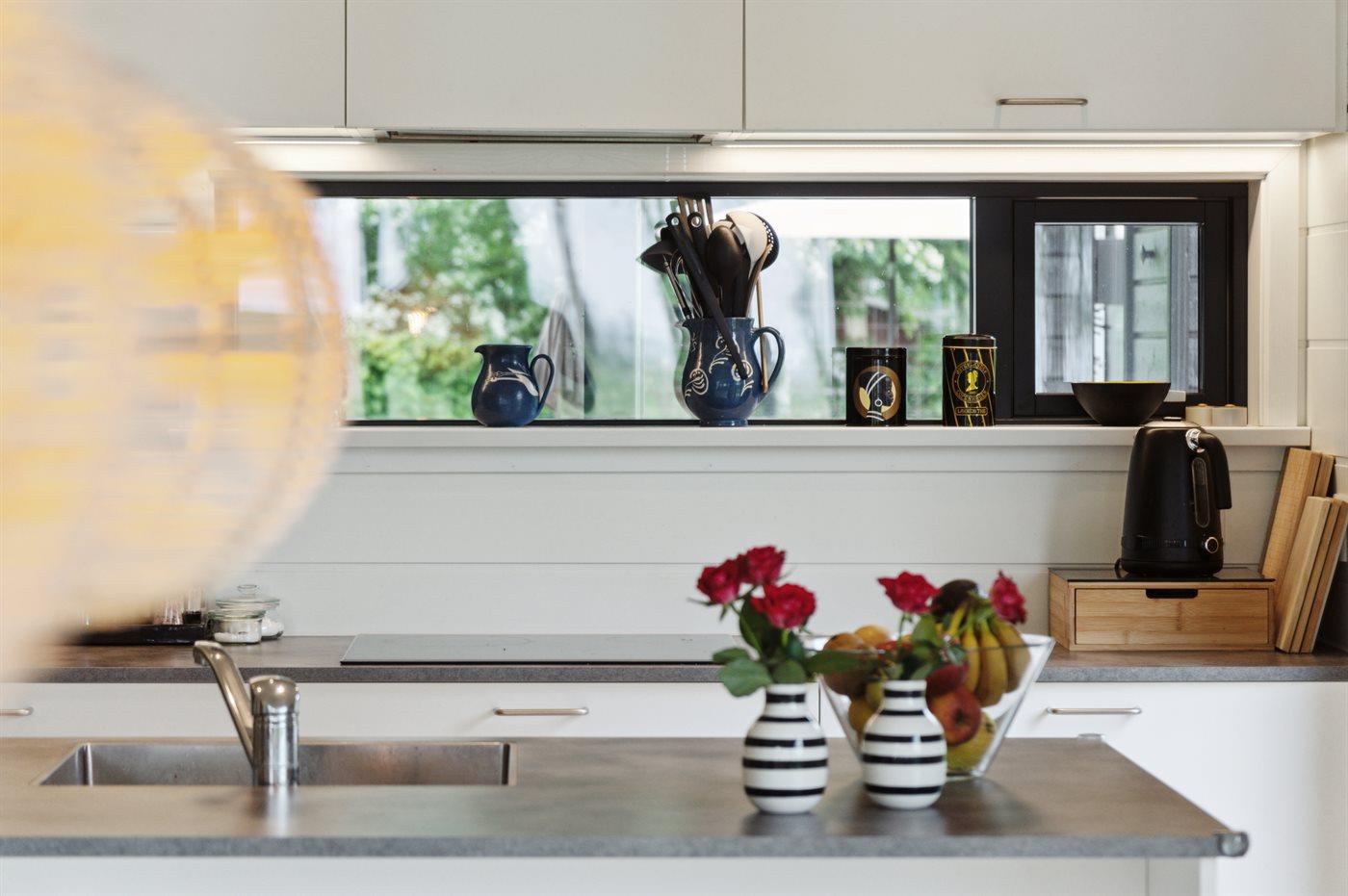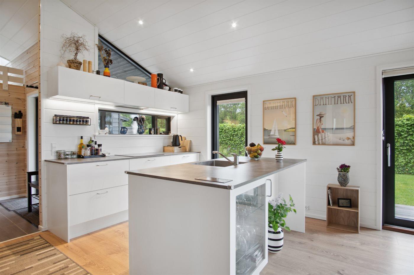 Køkkenet er udstyret med 1 køleskab. Der er 4 keramiske kogeplader, varmluftovn, mikrobølgeovn samt opvaskemaskine.