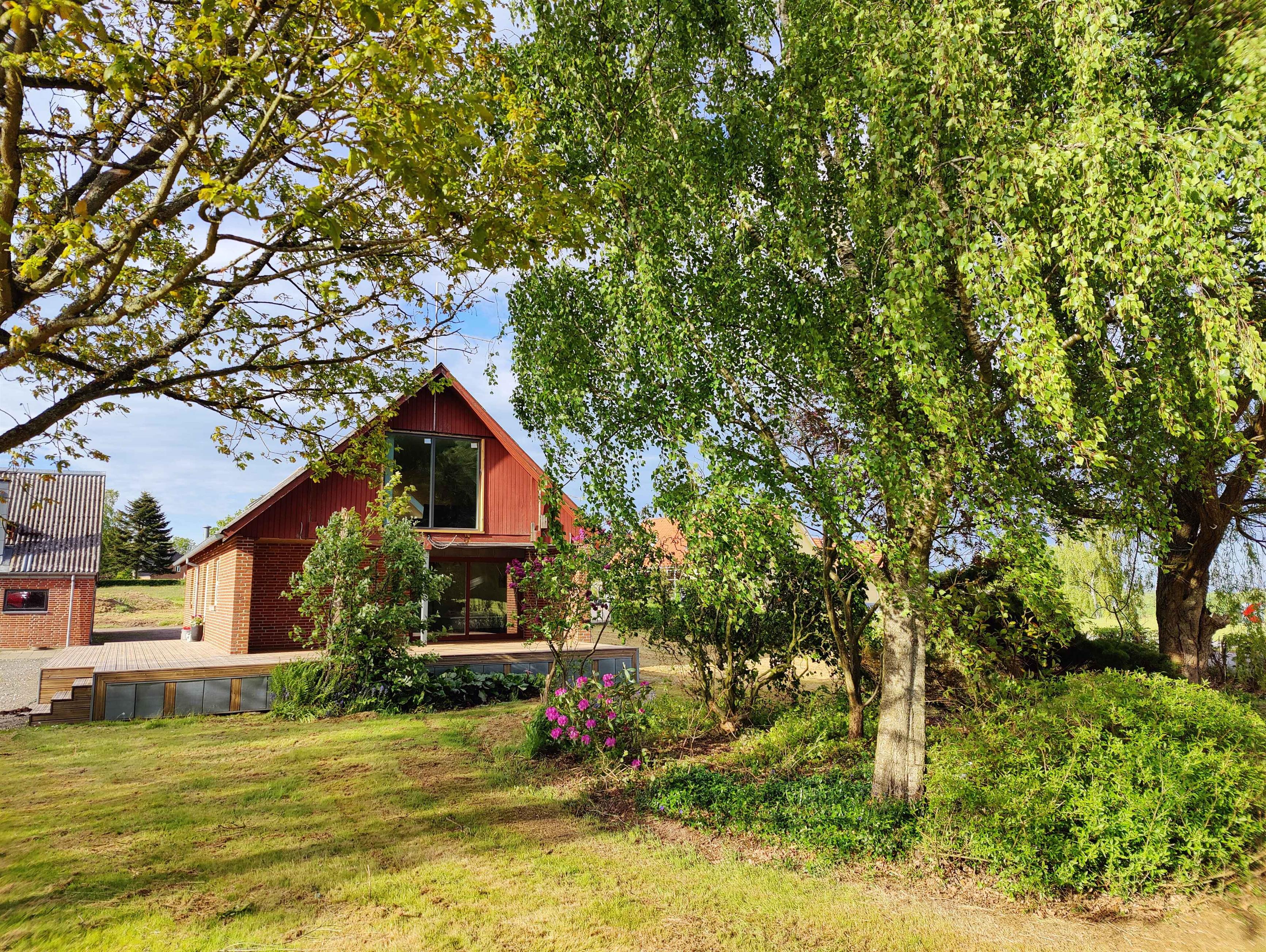 Totalrenoveret landhus med panoramaudsigt og stor terrasse nær Aarhus.