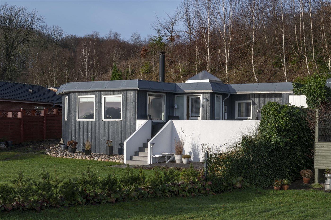 Hyggeligt sommerhus med panoramaudsigt og kun 50 m til børnevenlig strand ved Genner Strand.
