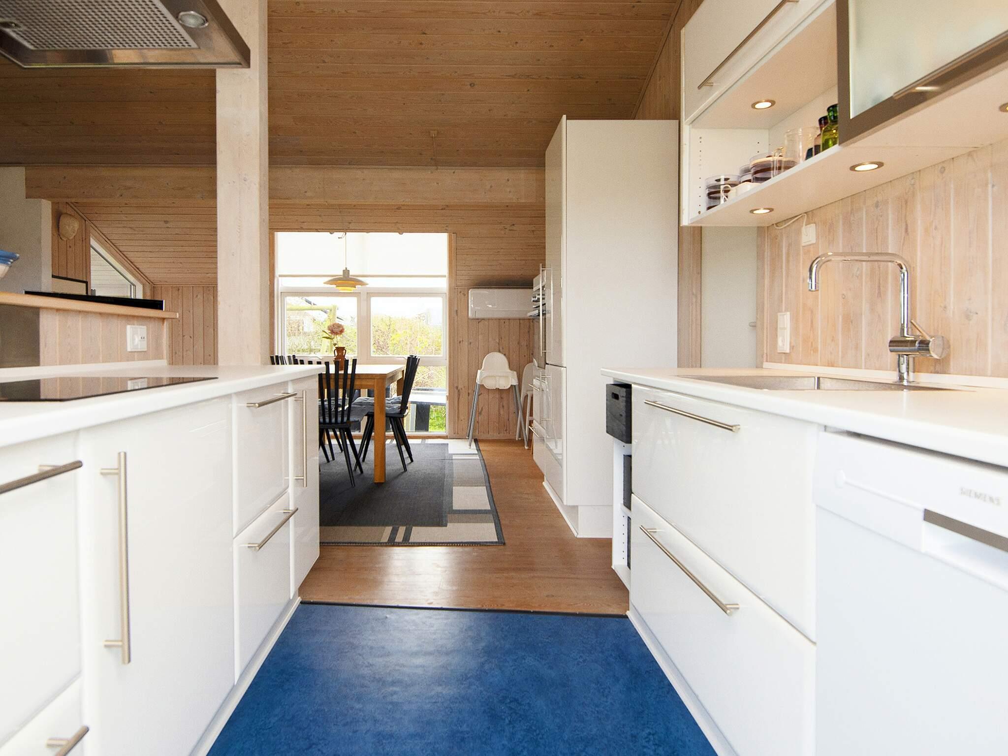 Køkkenet er blandt andet udstyret med keramiske kogeplader (induktion), separat ovn med grill, opvaskemaskine og mikrobølgeovn. Badeværelse med bademiljø, bruseniche samt gulvvarme. Til de mindste gæster findes der babyseng, højstol samt puslepude. Derudover er der vaskemaskine/tørretumbler (kombi). Huset har tre soveværelser, heraf to værelser med dobbeltsenge samt 1 værelse med en dobbeltopredning.