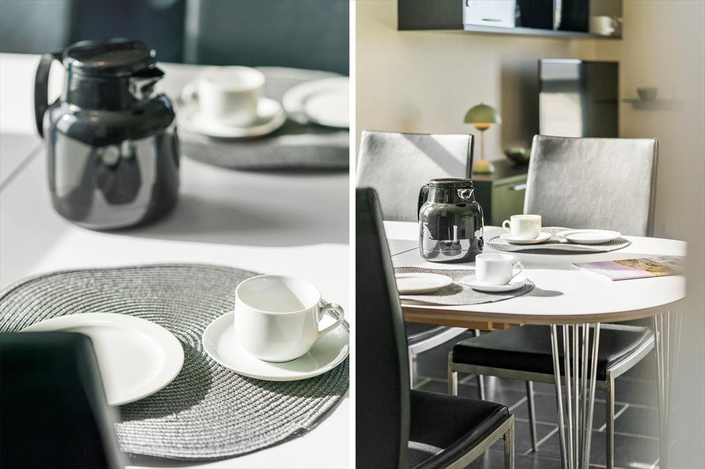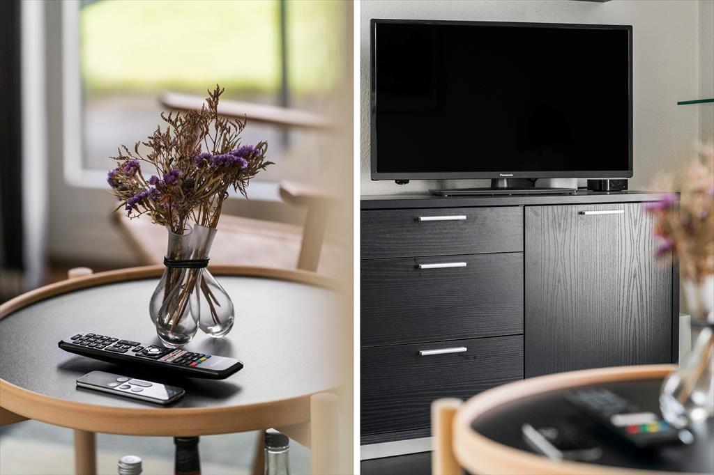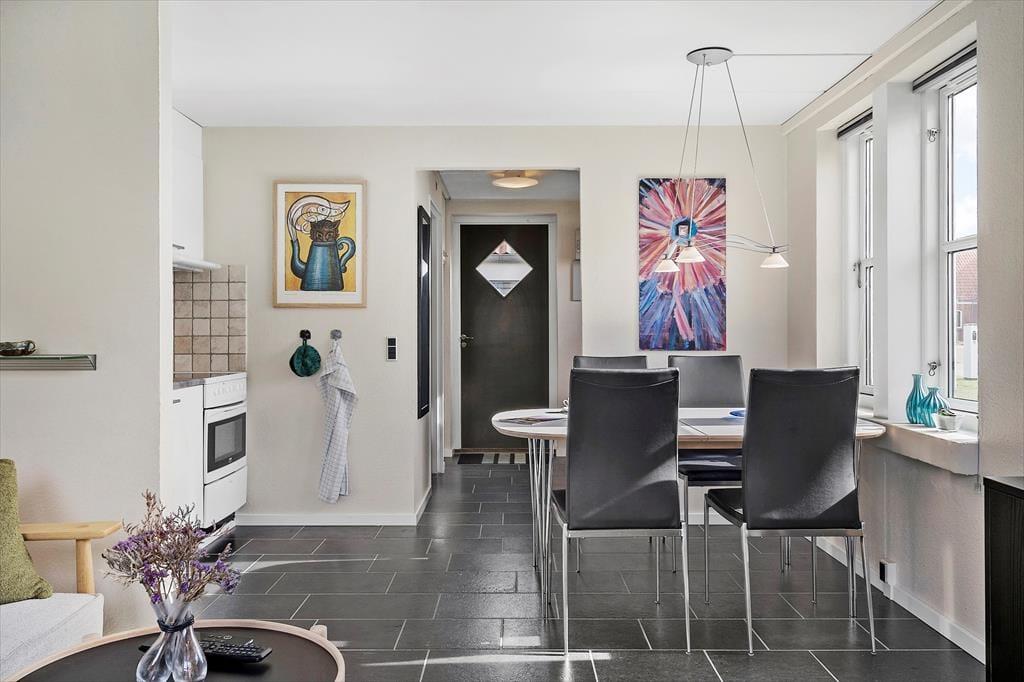Lejlighedens indretning er lys og imødekommende, hvilket skaber en hyggelig atmosfære, som straks får dig til at føle dig hjemme. Store vinduer lukker masser af naturligt lys ind og giver dig en smuk udsigt til fjorden fra opholdsområdet, så du altid har naturen tæt på. Her er der både plads til afslapning og fællesskab, og det åbne køkken- og stueområde giver de perfekte rammer for hyggelige måltider eller en afslappende aften med en god bog eller film. Uanset om du vil nyde en stille stund for dig selv eller samle familien til en hyggestund, vil denne lejlighed opfylde dine ønsker.