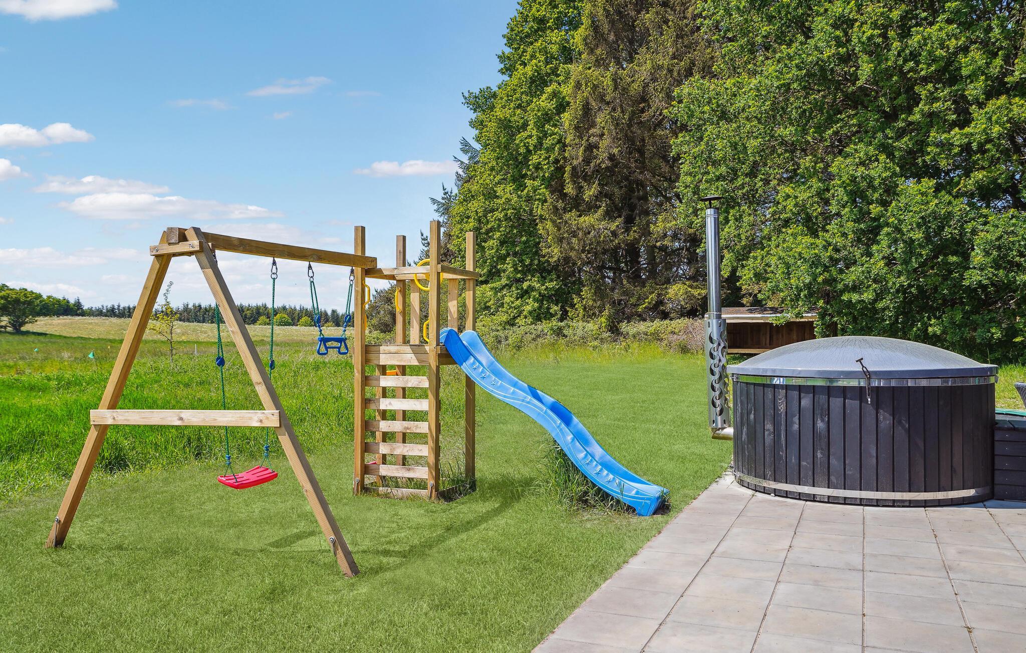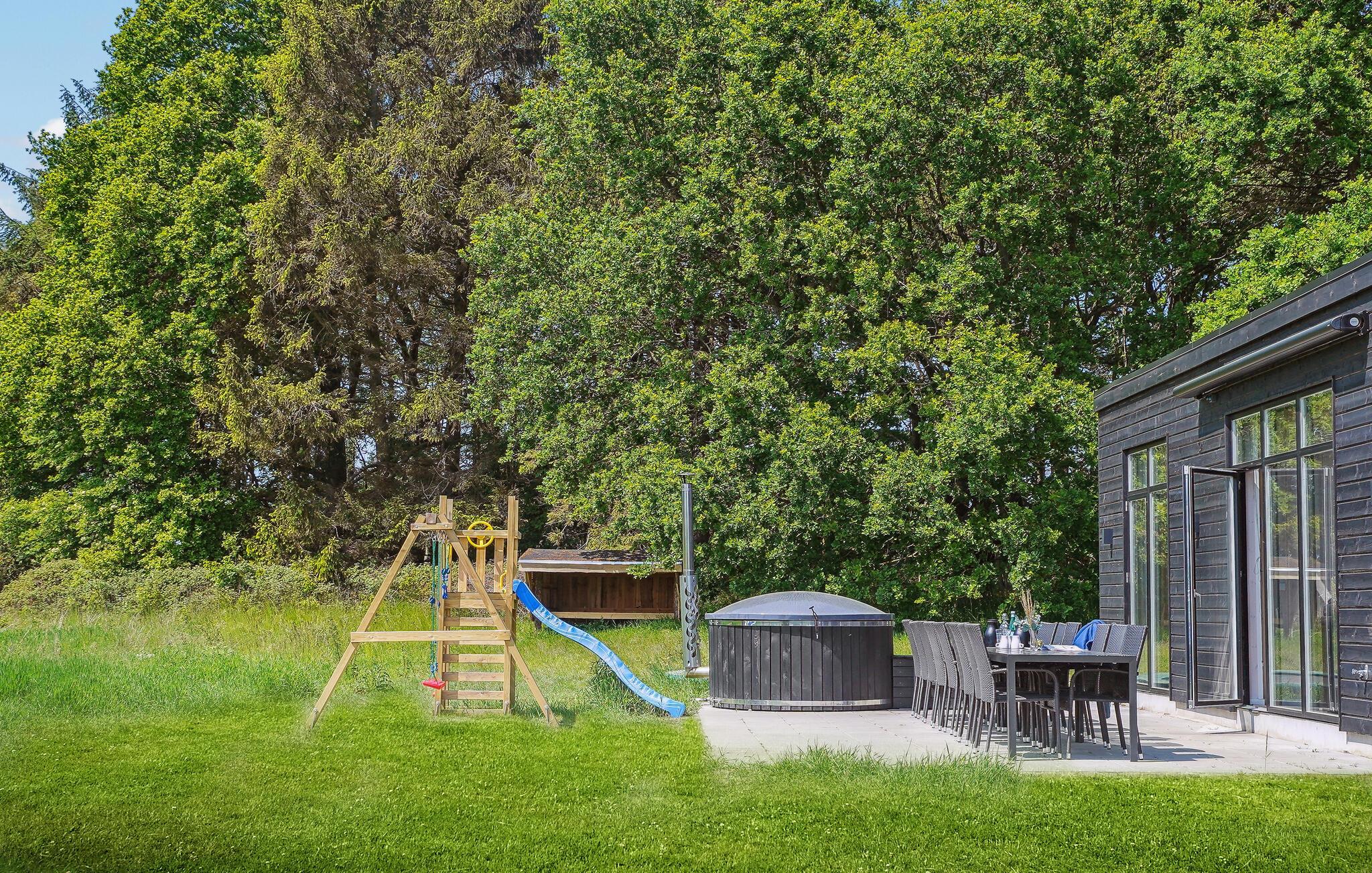 Skønt sommerhus med vildmarksbad, jacuzzi, sauna og flere familievenlige faciliteter.