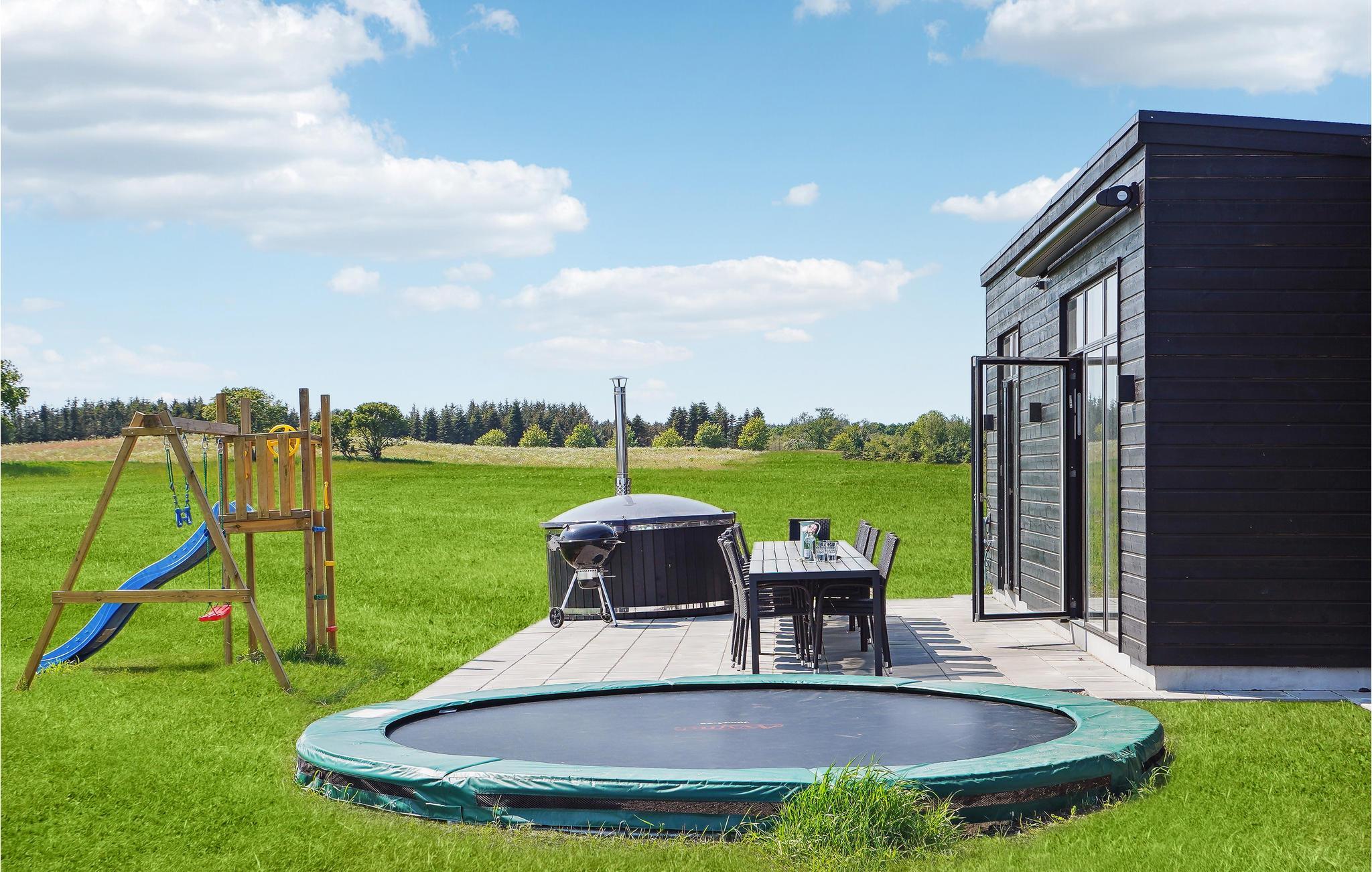 Lyst og rummeligt sommerhus nær stranden i Gjerrild med wellness og aktivitetsrum.