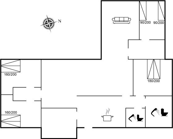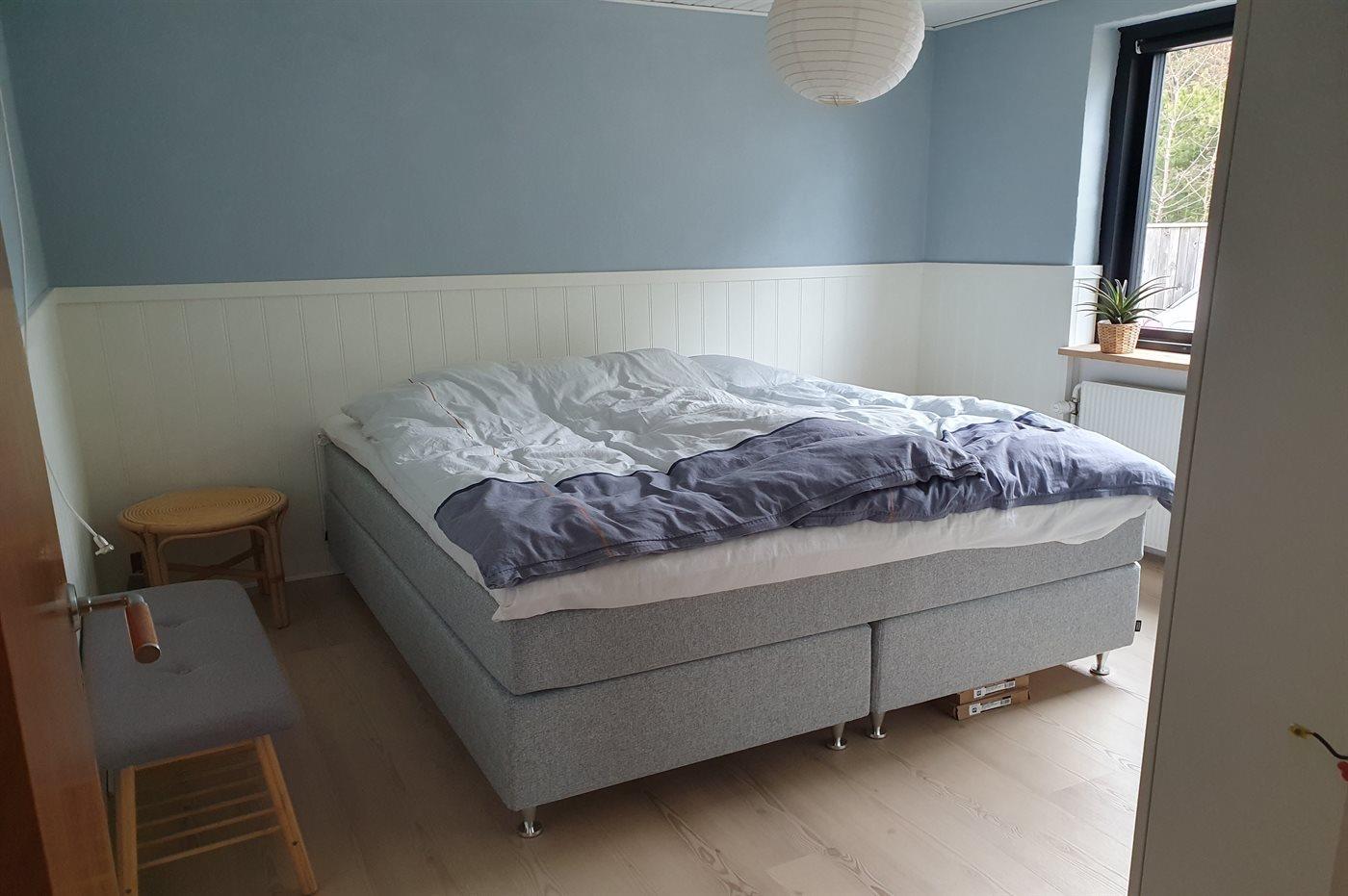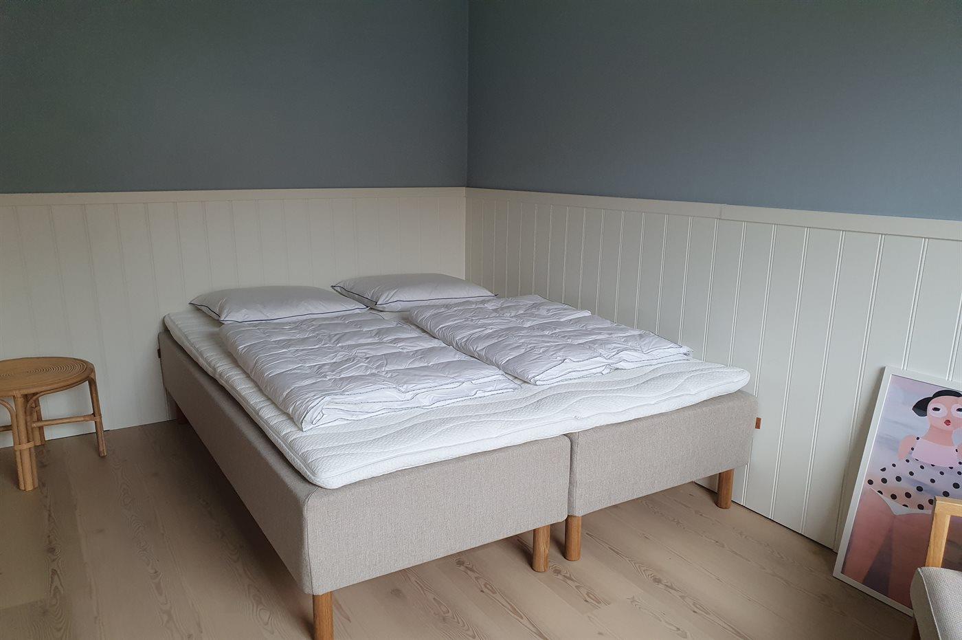 Der er i alt 4 soveværelser. Sovepladserne fordeler sig på: 6 sovepladser i dobbeltsenge. 2 sovepladser i enkeltsenge.