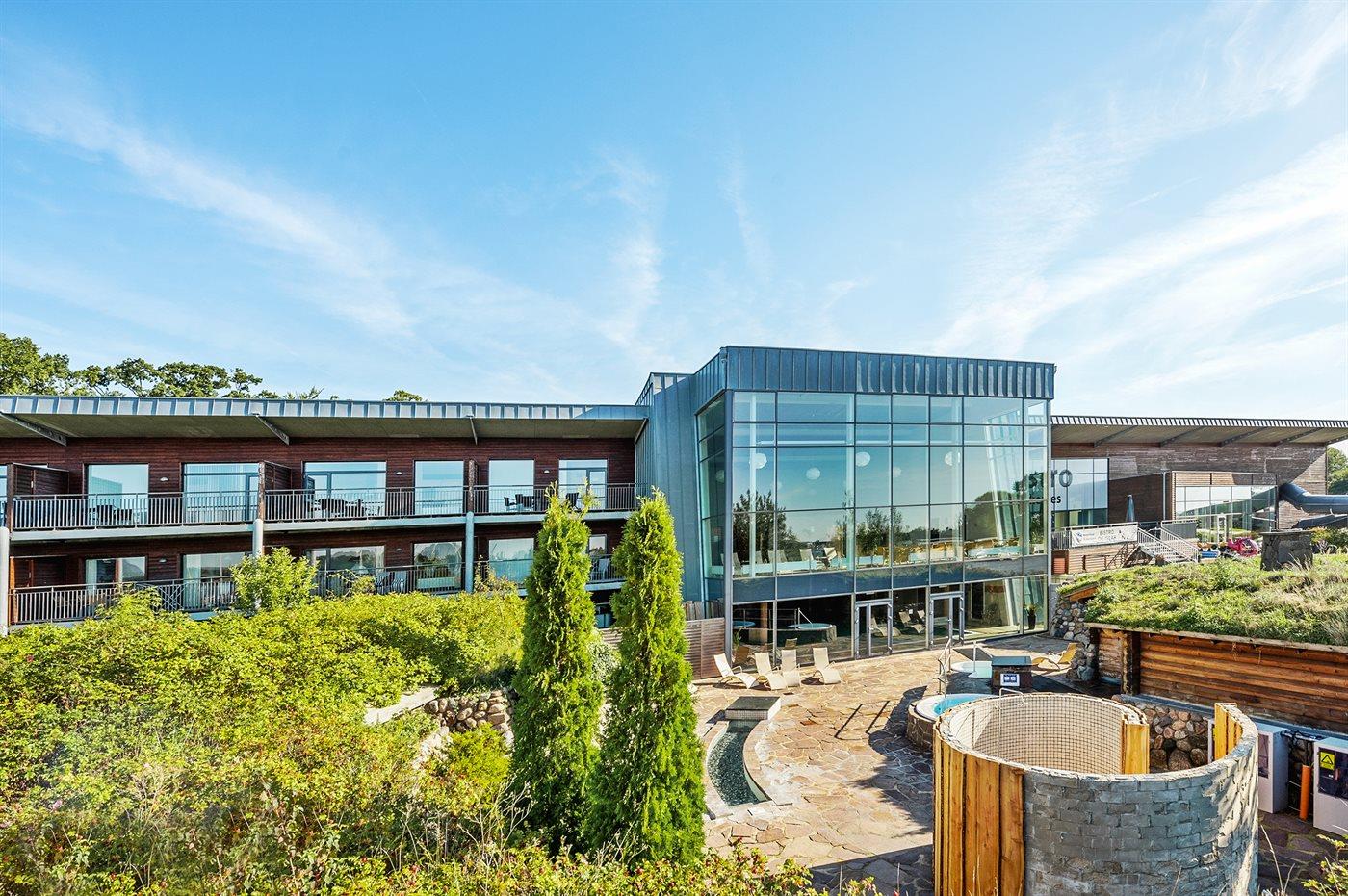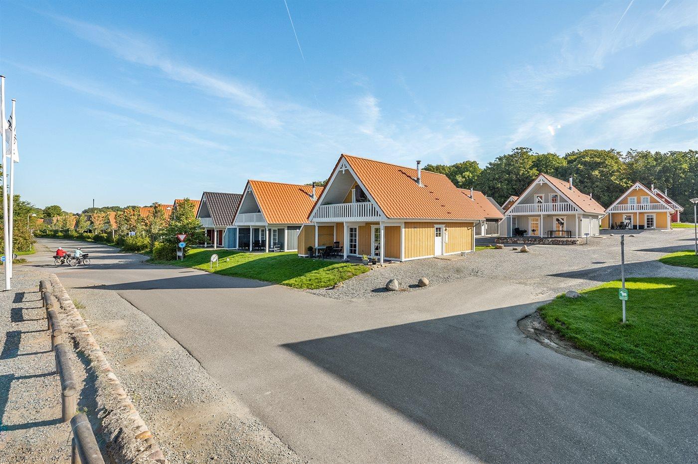 Flot træsommerhus ved Flensborg Fjord med spa, sauna og stor terrasse i feriecenter Marina Fiskenæs.