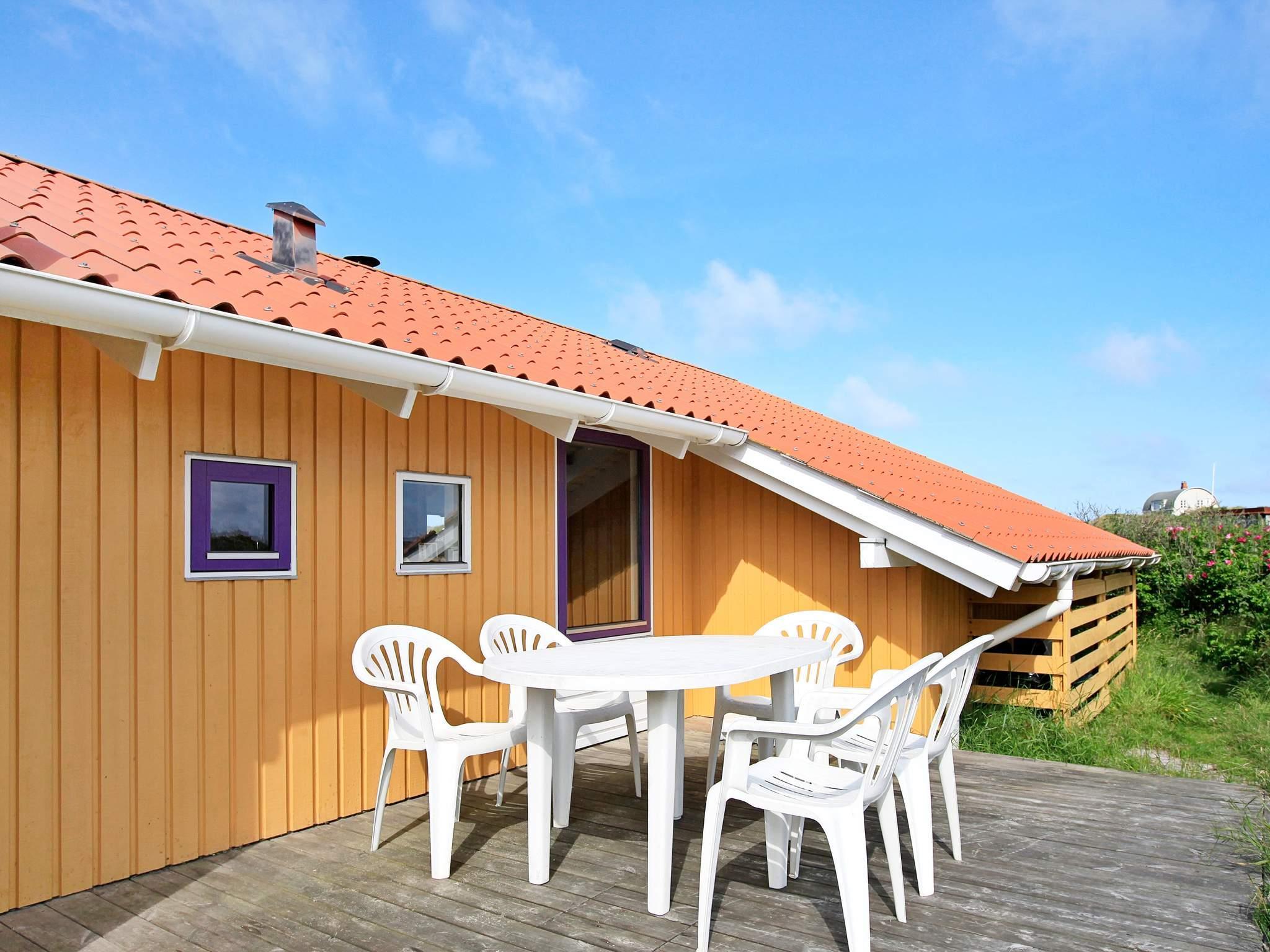 Ved en af Jyllands bedste strande ligger dette sommerhus, der er holdt i lyse farver. I stuen er brændeovnen det naturlige samlingspunkt, ligesom det åbne køkken indbyder til at madlavning er noget, som man er fælles om. Huset rummer bl.a. en sauna og spabad og er beliggende på en lyngklædt naturgrund. Der er 2 barnesenge. Huset har 2 overdækkede og 2 åbne terrasser. Oplev den flotte udsigt over klitterne og solnedgangen fra den vestvendte, overdækkede terrasse. Havemøbler forefindes. Fra huset er der ca. 600 m til sø, hvor der kan fiskes (HUSK fiskekort, hvis det kræves). Kort afstand til Vejers Strand, hvor det er tilladt at køre bil på en del af stranden. Udlejes ikke til ungdomsgrupper.