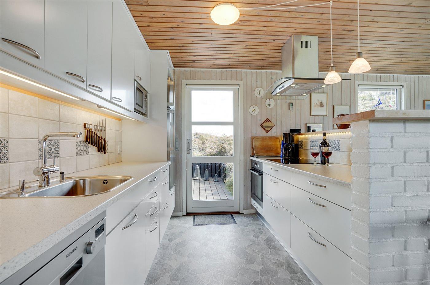 Køkkenet er udstyret med 1 køleskab samt fryser med en kapacitet på 48 liter. Der er 4 el kogeplader, emhætte, varmluftovn, mikrobølgeovn samt opvaskemaskine. Endvidere elkoger, kaffemaskine, brødrister samt håndmixer.