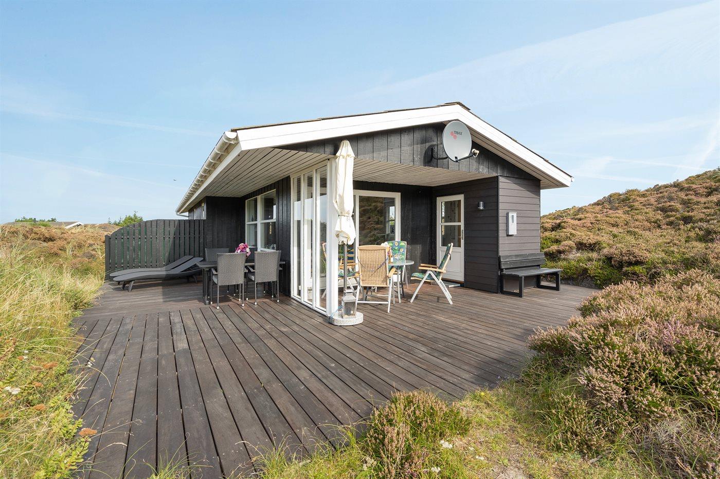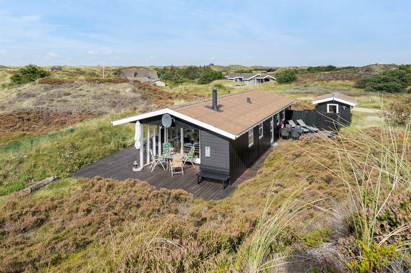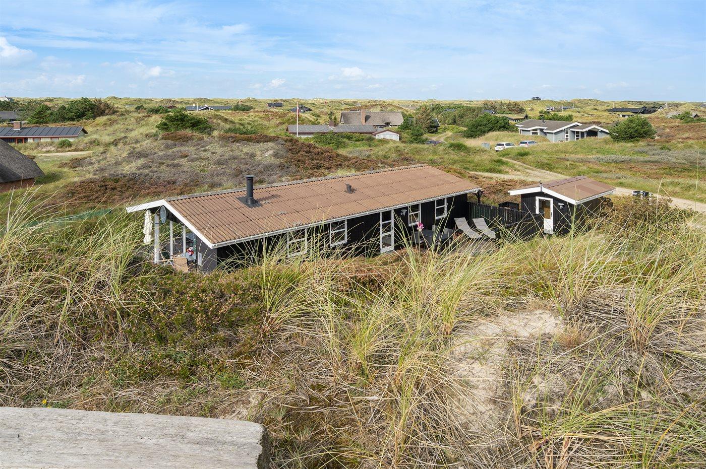 Ferieboligen er beliggende på en 1588 m² stor naturgrund midt mellem bakker, lyng og marehalm. På grunden er der adgang til et af områdets højeste udsigtspunkter. Boligen er bygget i 1984 og er på 74 m². Nærmeste forretning er beliggende i Vejers i en afstand af 3500 m.