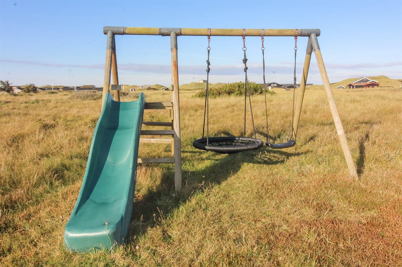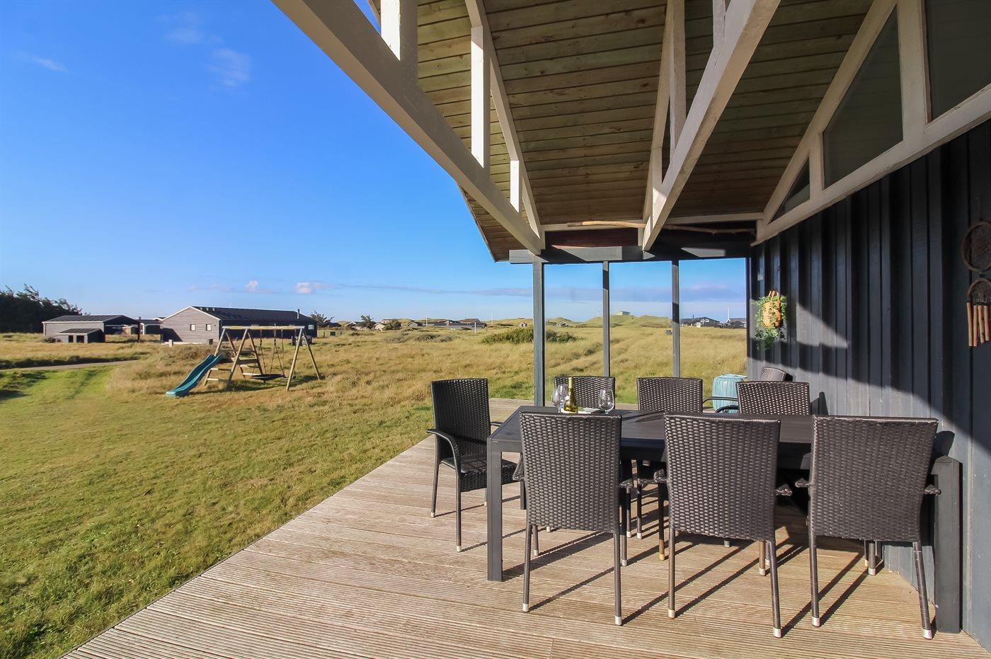 Ferieboligen er beliggende på en 2503 m² stor klitgrund. Der er 250 m til havet. Nærmeste forretning er beliggende i en afstand af 3500 m. Der er en golfbane i en afstand af 3500 m. Til ferieboligen hører åbent terrasseareal. Desuden er der overdækket terrasse. Gynge. Rutchebane. Grill til rådighed. Der er installeret stik til opladning af elbil. CEE stik. Med 11 kW ladeeffekt. Parkering ved ferieboligen.