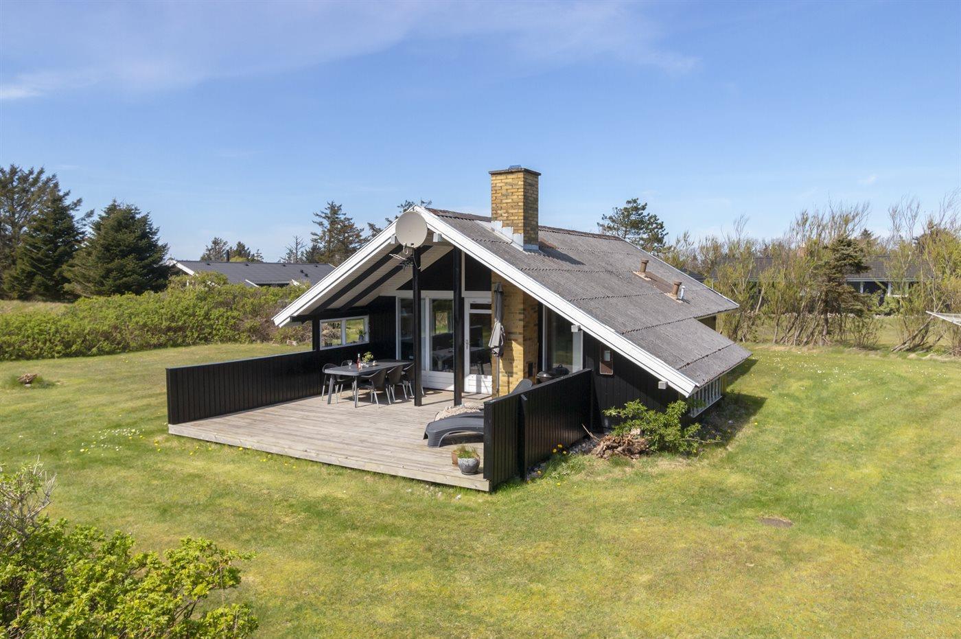 Hyggeligt sommerhus i Løkken med naturgrund, brændeovn og terrasse, tæt på havet og butik.