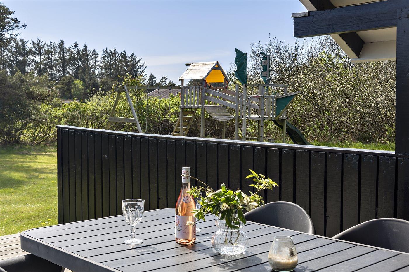 Ferieboligen er beliggende på en 1189 m² stor naturgrund. Der er 1000 m til havet. Nærmeste forretning er beliggende i en afstand af 500 m. Til ferieboligen hører 21 m² terrasseareal. Desuden er der 9 m² overdækket terrasse. Der er redskabsrum. Gynge. Sandkasse. Bålsted.